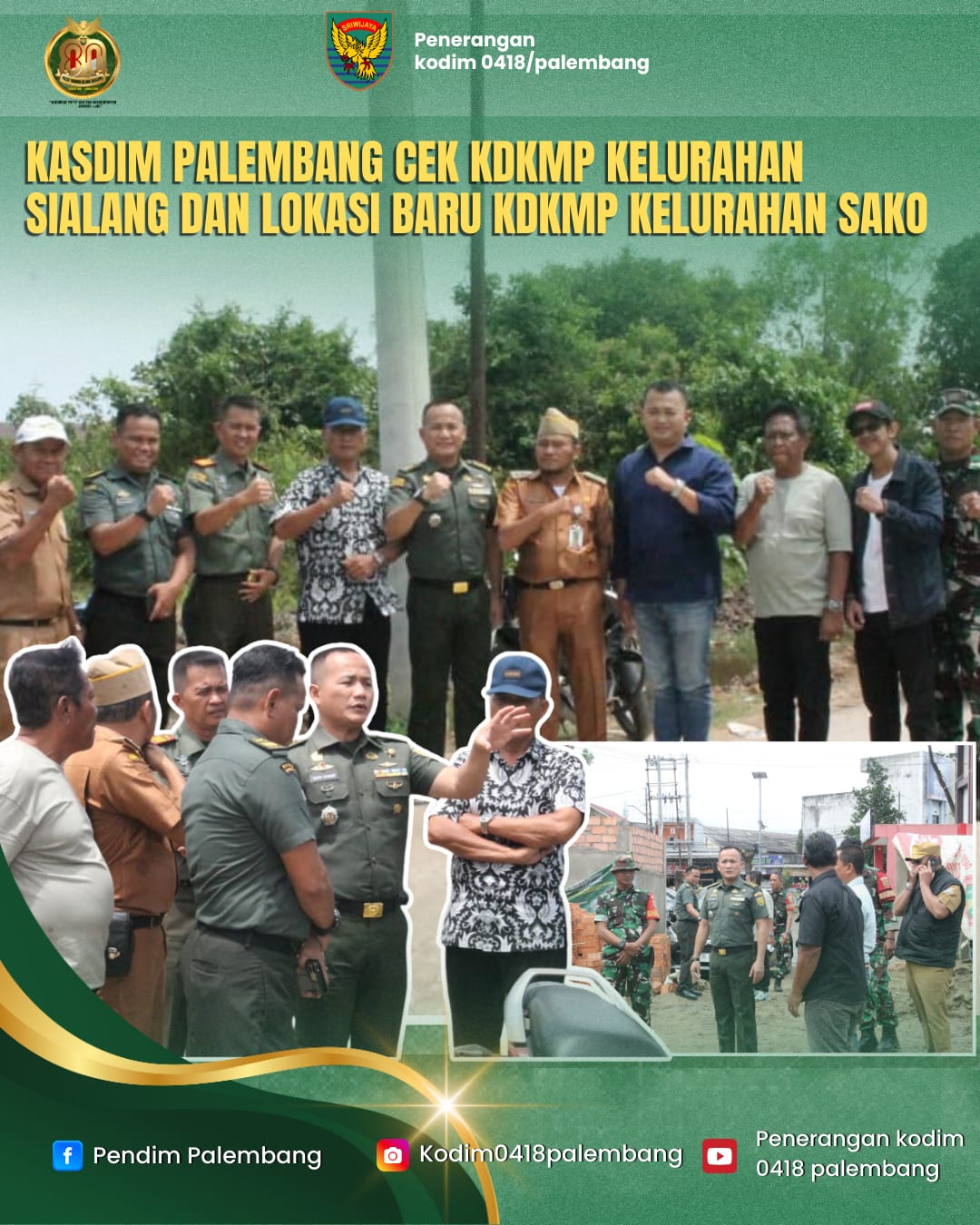 Komitmen mendukung program kewilayahan terus ditunjukkan jajaran Kodim 0418/Palembang. Kasdim 0418/Palembang, Letkol Inf Dery Septriandi, ST., M.M., M.Han., turun langsung melakukan pengecekan KDKMP di Kelurahan Sialang serta meninjau lokasi baru pembangunan KDKMP di Kelurahan Sako