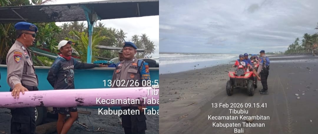 Personel Satuan Polairud Polres Tabanan melaksanakan patroli pesisir dan sambang wilayah di Pantai Pasut, Jumat (13/02/2026) pukul 10.00 Wita. Kegiatan ini dilakukan sebagai langkah preventif untuk menjaga situasi keamanan dan ketertiban masyarakat (harkamtibmas) di kawasan pesisir serta memastikan aktivitas masyarakat dan nelayan berjalan aman dan lancar.