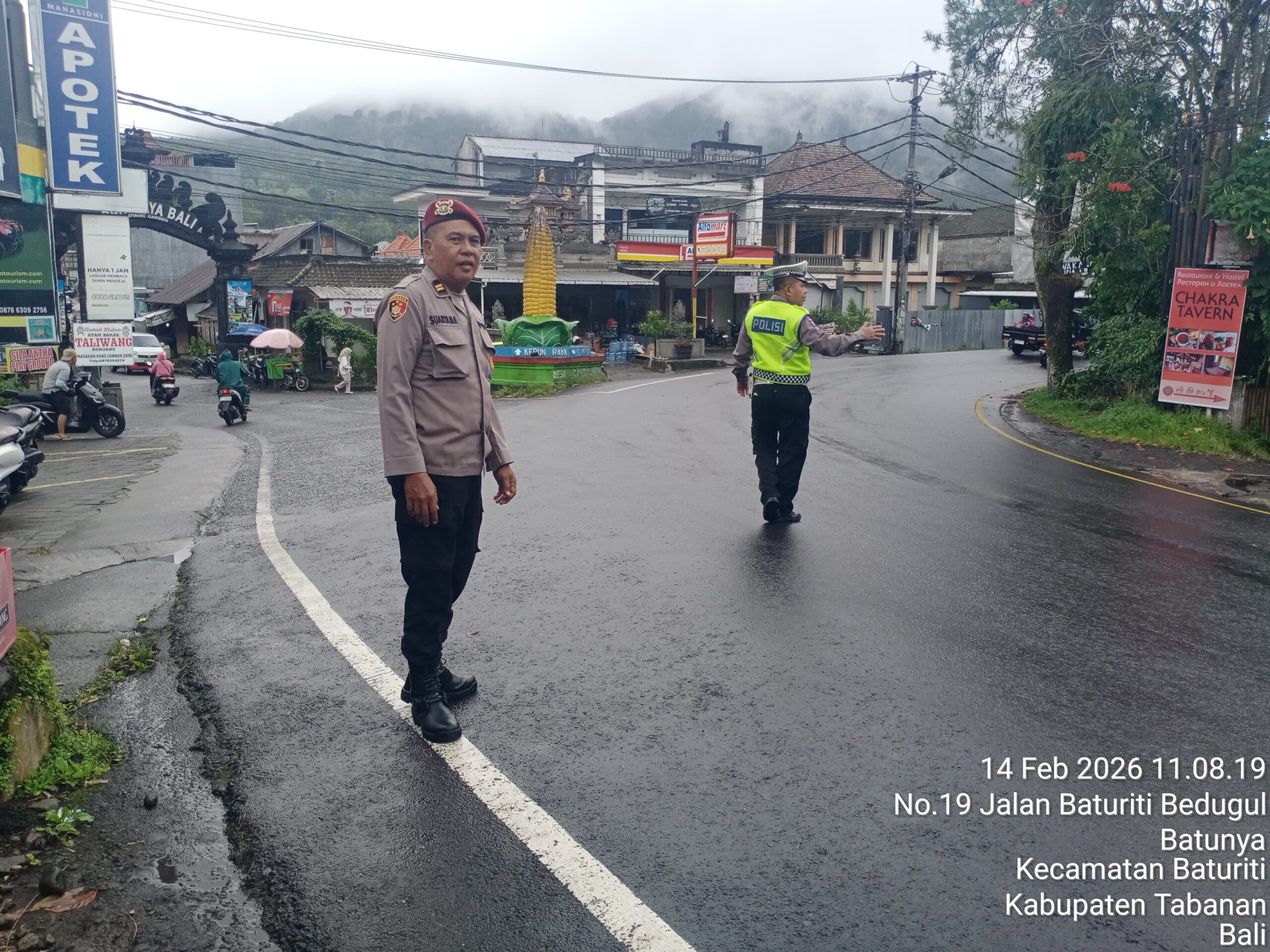 Polsek Baturiti melaksanakan kegiatan patroli sambang pada Sabtu, 14 Februari 2026, mulai pukul 12.00 Wita hingga 16.00 Wita dengan fokus utama pengamanan jalur wisata dan obyek wisata di kawasan Bedugul.