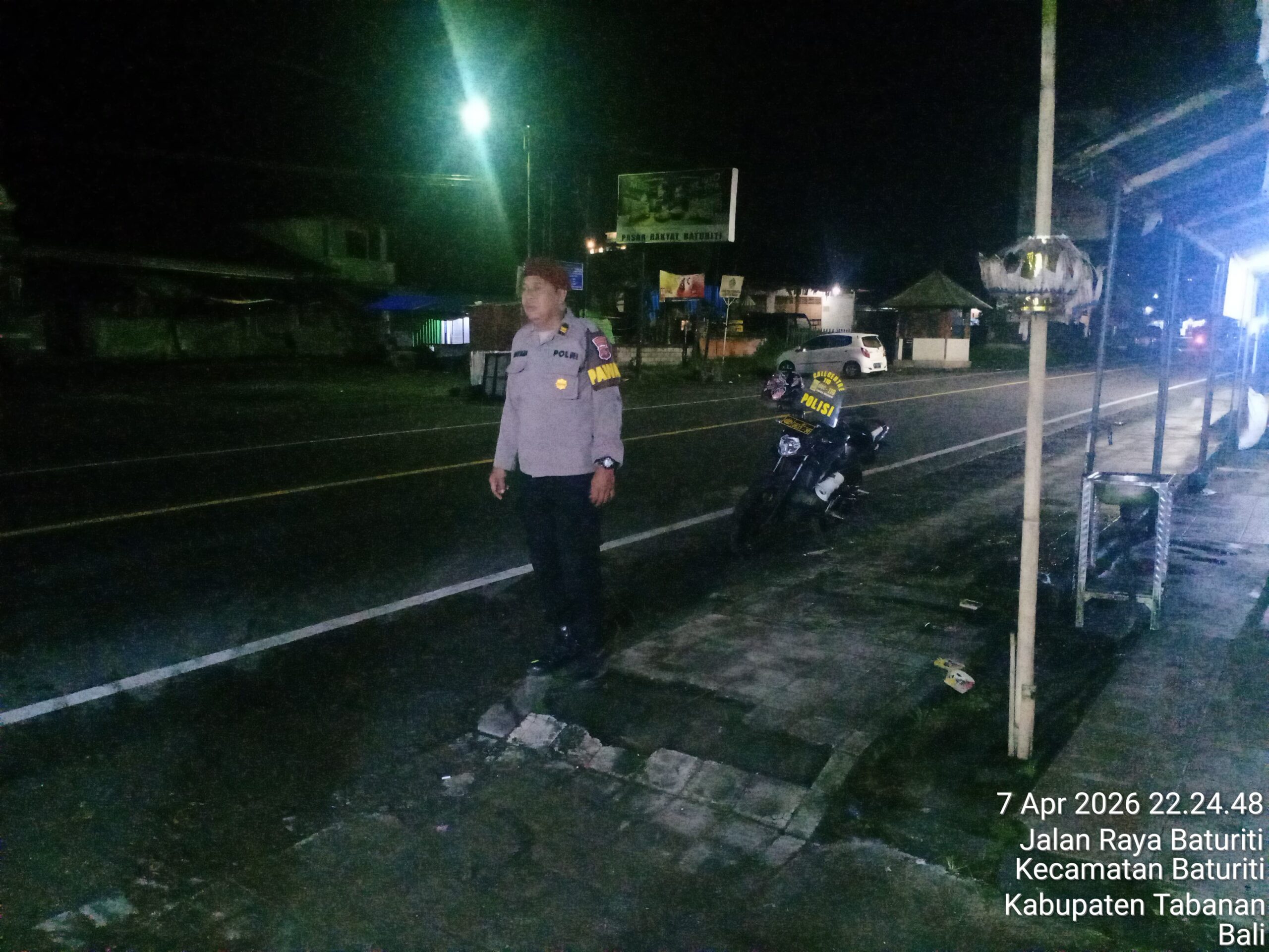 Polsek Baturiti, Rabu (8/4/2026) melaksanakan kegiatan Kegiatan Rutin Yang Ditingkatkan (KRYD) berupa patroli sambang pada hari Selasa, 7 April 2026, pukul 21.30 Wita s.d. 23.00 Wita di wilayah hukum Polsek Baturiti. Kegiatan ini dilaksanakan sebagai upaya preventif untuk mencegah potensi gangguan, ambang gangguan, maupun gangguan nyata pada malam hari.