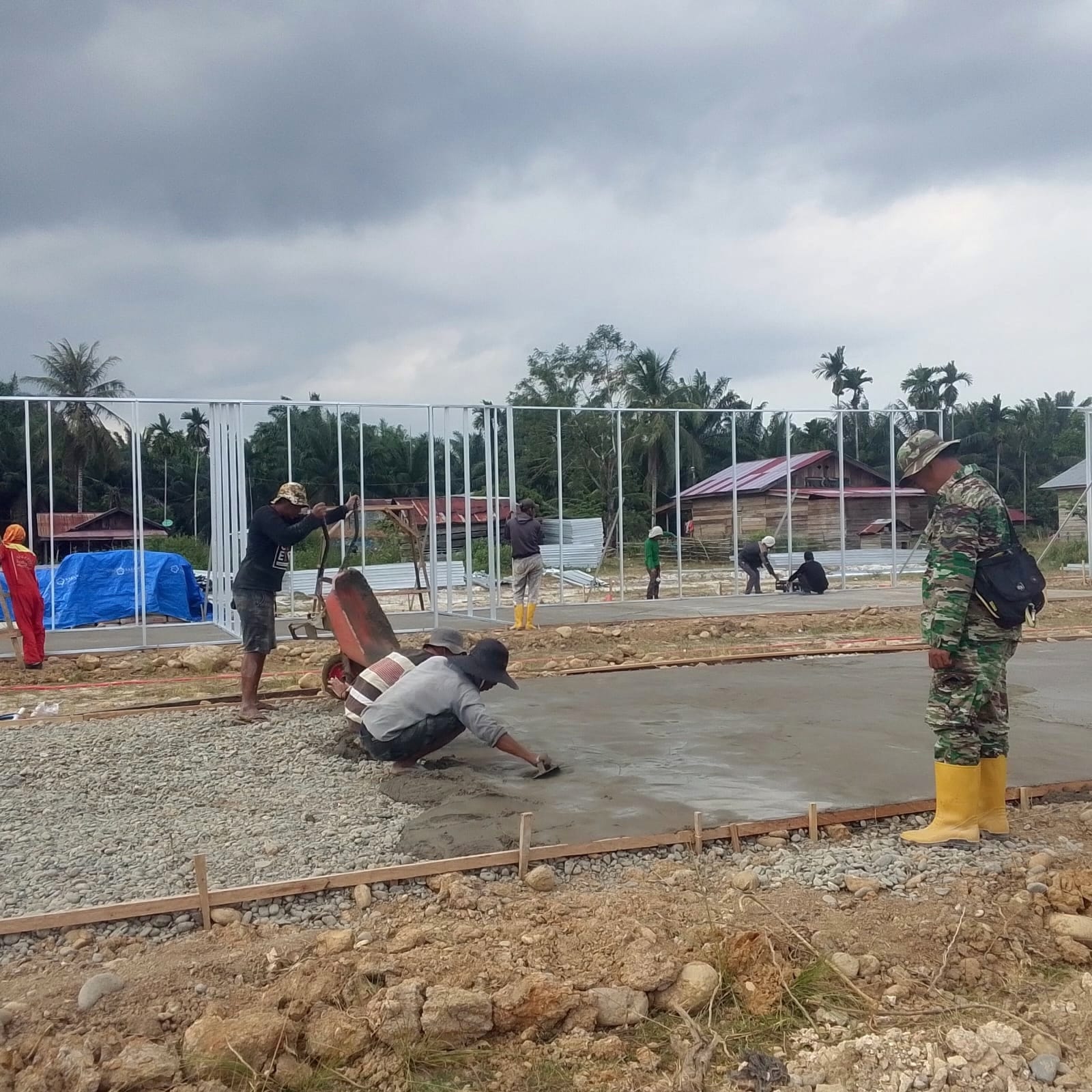 Berdasarkan pantauan di lapangan, progres pembangunan di lokasi pertama telah mencapai sekitar 20 persen. Dari total rencana 101 unit Huntara, pekerjaan saat ini difokuskan pada pemasangan rangka baja serta pengecoran lantai rumah induk. Distribusi material bangunan juga terus dilakukan secara bertahap guna mendukung kelancaran proses konstruksi.