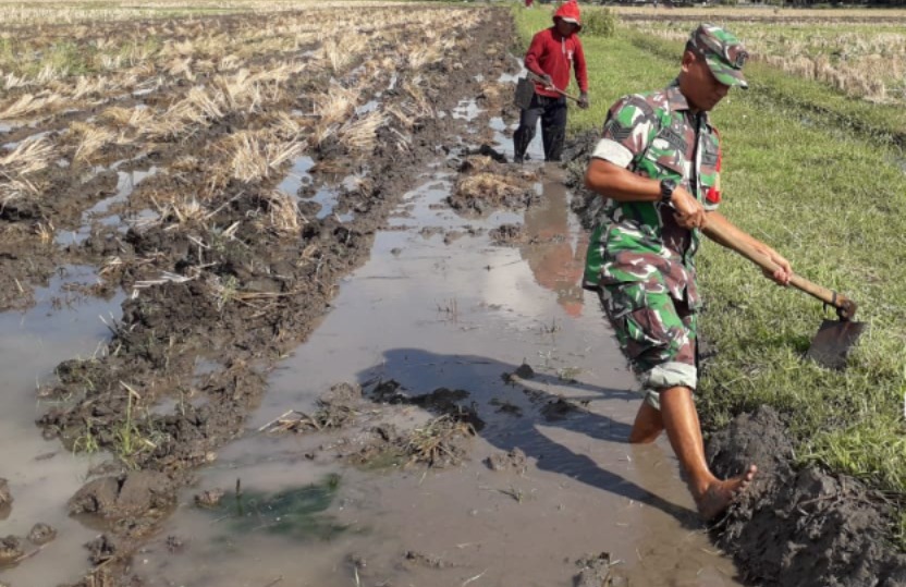 Perkuat Ketahanan Pangan, Serma Muyoto Bantu Petani Benahi Pematang Sawah