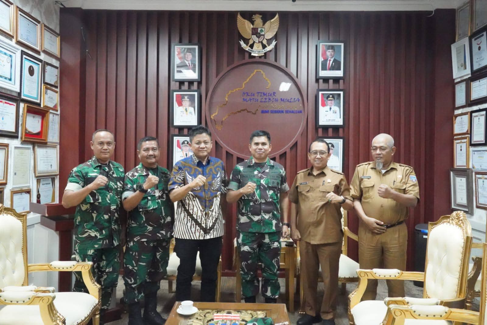 Suasana penuh keakraban mewarnai kunjungan Komandan Pusat Latihan Tempur (Danpuslatpur) Kodiklatad, Brigjen TNI Polsan Situmorang, S.E., M.KP., M.Phil., ke Pemerintah Kabupaten OKU Timur.