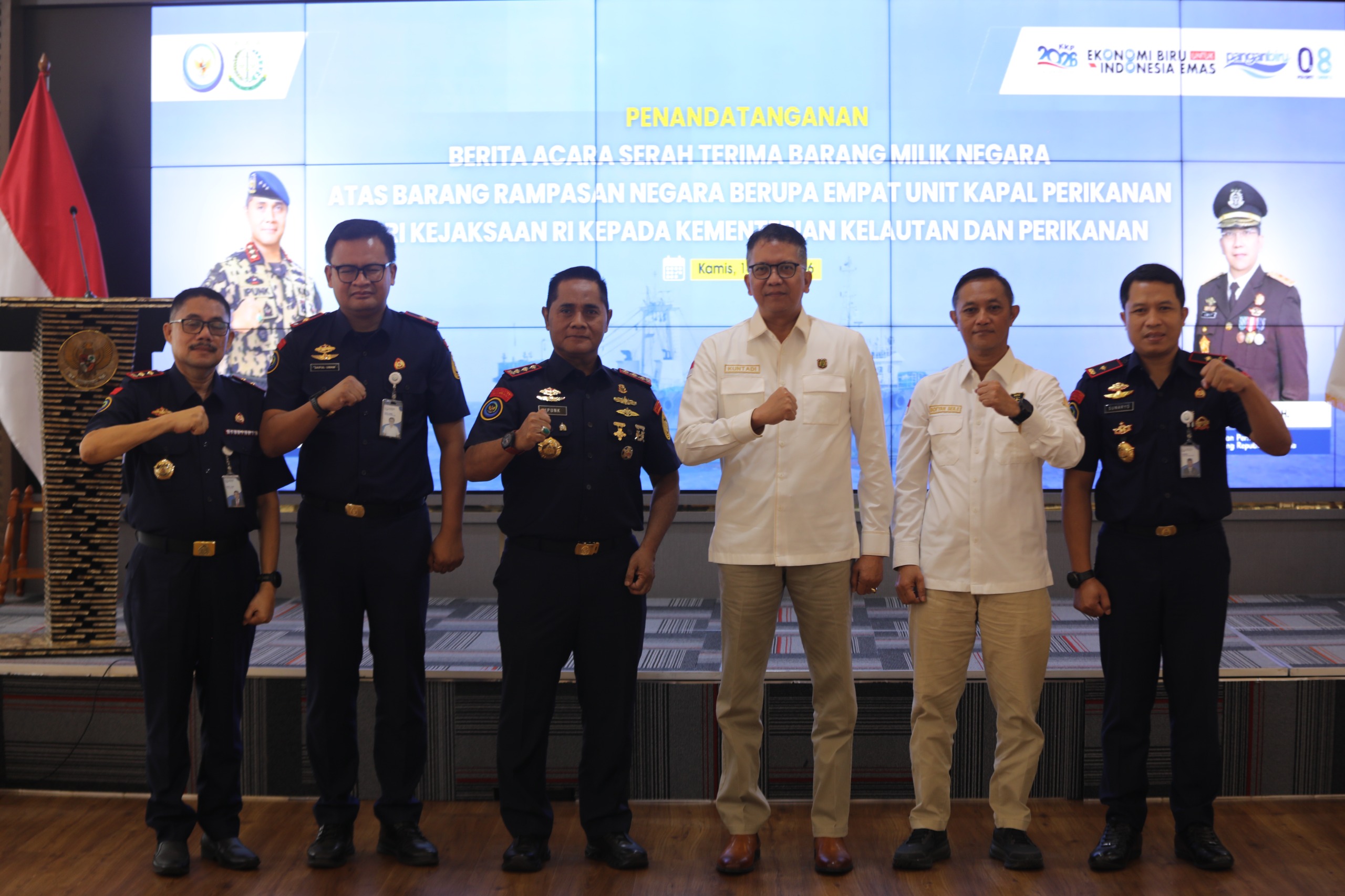 Badan Pemulihan Aset melaksanakan serah terima Barang Milik Negara yang berasal dari Barang Rampasan Negara kepada Kementerian Kelautan dan Perikanan (KKP) yang berlangsung di Ruang Rapat Tuna, Gedung Mina Bahari IV Kantor KKP pada Kamis, 16 April 2026.