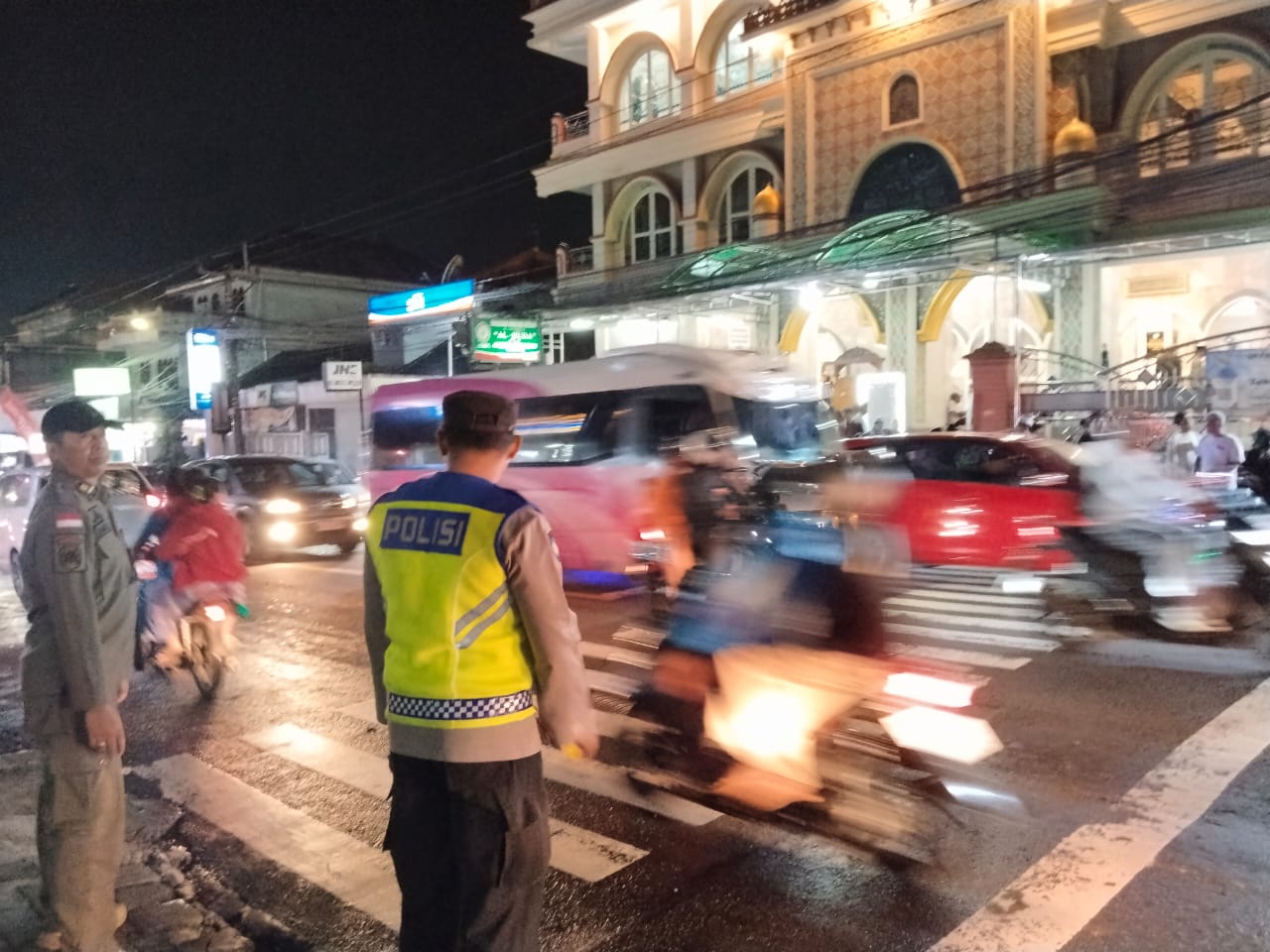 Pada saat pelaksanaan pengamanan personil melaksanakan penjagaan dan pengaturan arus lalulintas dan juga membantu penyebrangan umat muslim yang akan dan selesai melaksanakan ibadah sholat tarawih mengingat arus lalulintas di depan masjid volume kendaraan yang ramai karena jalan ini merupakan jalur antar provinsi.