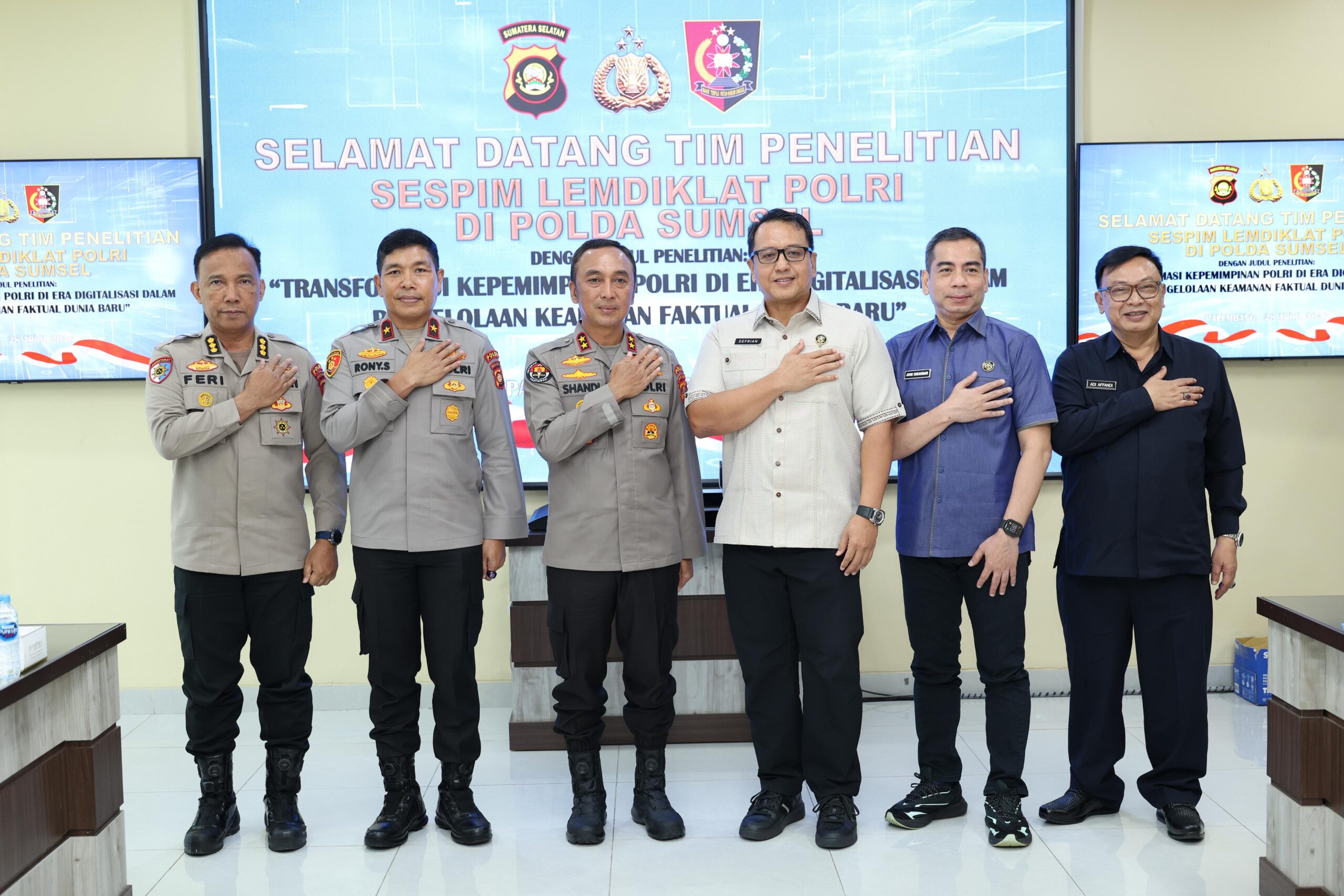 Kapolda Sumsel, Irjen Pol Sandi Nugroho, secara langsung menerima kunjungan Tim Penelitian Sespim Lemdiklat Polri di Gedung Presisi Mapolda Sumsel, Selasa, 28 April 2026. Kegiatan ini menjadi bagian dari upaya pemetaan transformasi kepemimpinan Polri dalam menghadapi dinamika keamanan di era digital.