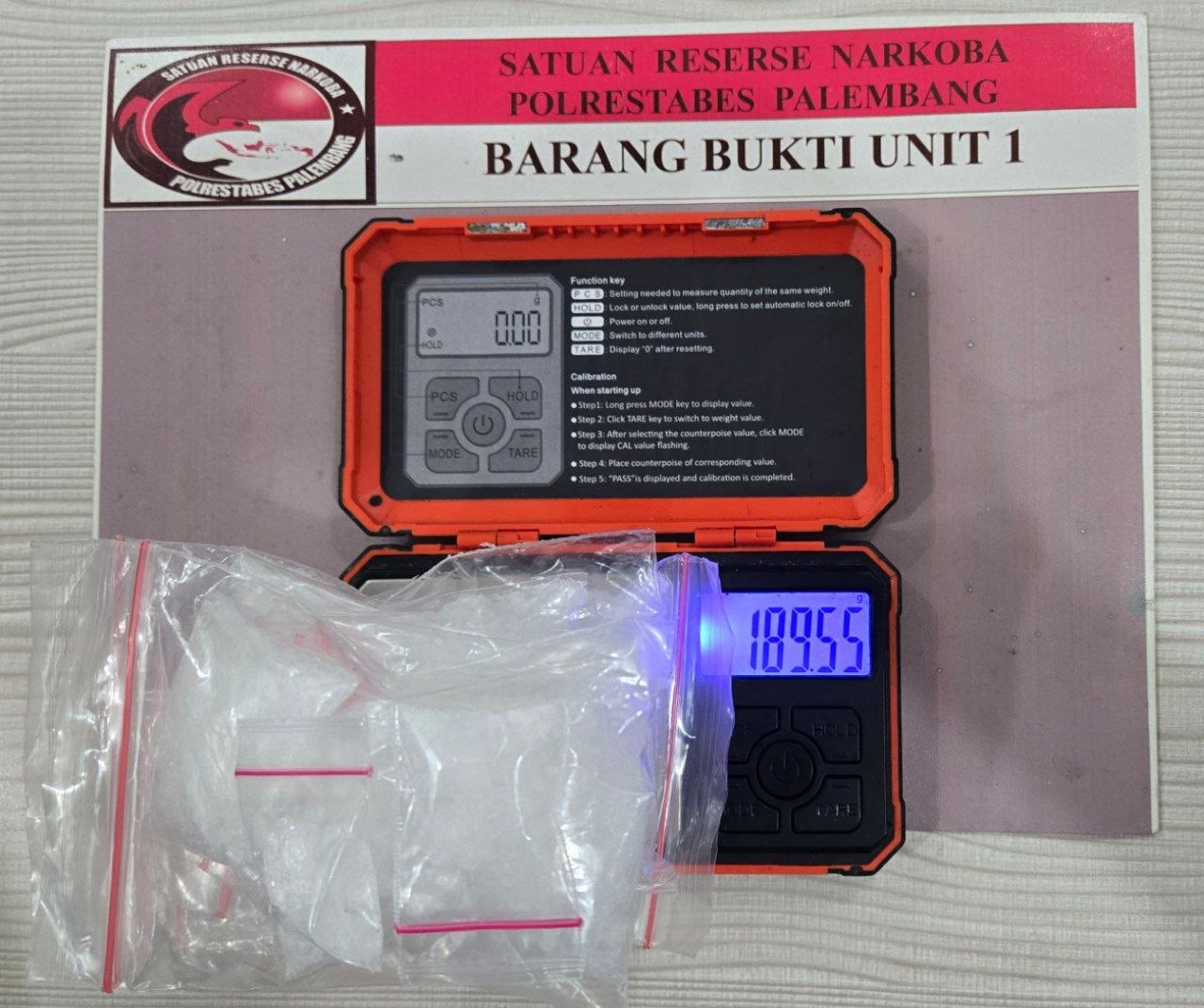 Secara keseluruhan, barang bukti yang diamankan meliputi 11 paket sabu dengan berat bruto 189,55 gram, satu unit timbangan digital, plastik klip, alat bantu pengemasan, tiga unit telepon seluler, serta satu unit sepeda motor yang digunakan dalam aktivitas peredaran narkotika.
