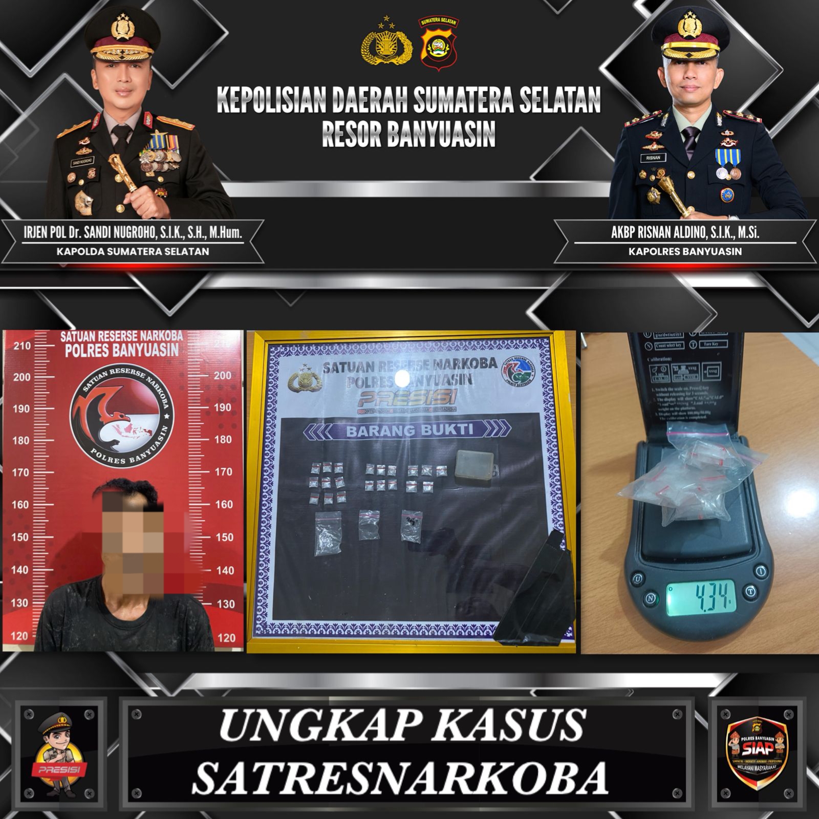 Pengungkapan ini merupakan kasus keempat yang berhasil diungkap oleh Satresnarkoba Polres Banyuasin dalam kurun waktu tujuh hari, menunjukkan intensitas penegakan hukum yang terus meningkat di wilayah tersebut.