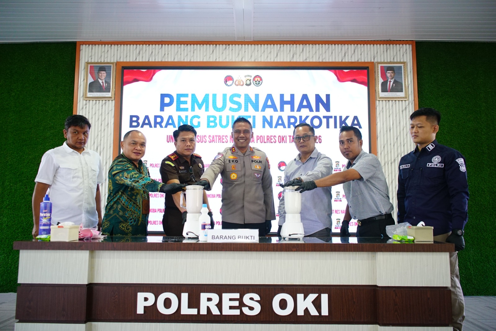 Kegiatan pemusnahan ini turut disaksikan oleh perwakilan BNNK OKI, Kejaksaan Negeri OKI, Pengadilan Negeri Kayuagung, serta penasihat hukum tersangka sebagai bentuk jaminan transparansi dan legalitas proses hukum.