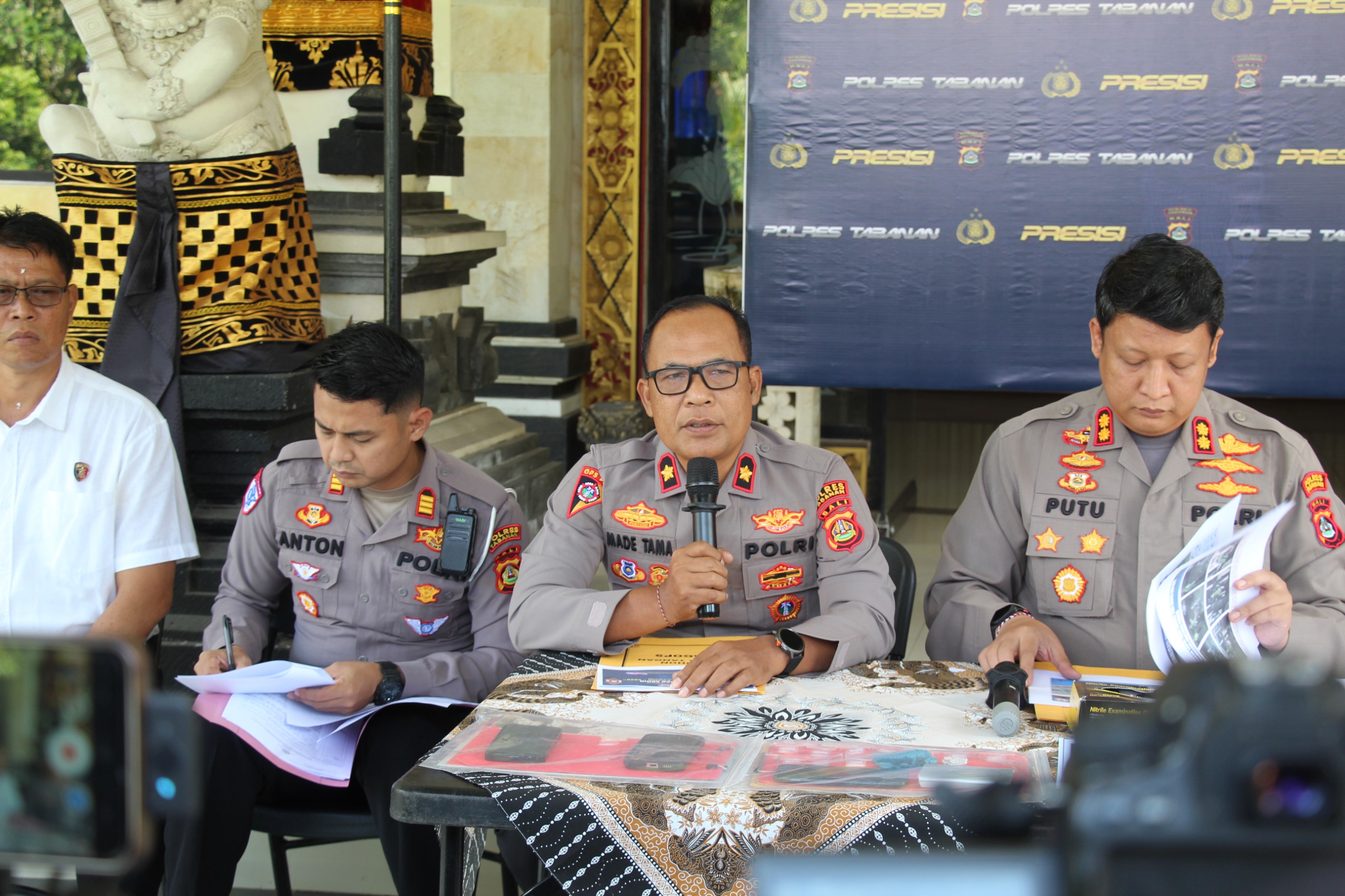 Polres Tabanan menggelar Press Conference pengungkapan kasus oleh Sat Lantas serta penyampaian hasil pelaksanaan Ops Ketupat Agung 2026, Rabu (1/4/2026) pukul 10.00 Wita, bertempat di Loby Polres Tabanan. Kegiatan dipimpin langsung oleh Kapolres Tabanan AKBP I Putu Bayu Pati, S.I.K., M.H., serta dihadiri para Pejabat Utama Polres Tabanan dan insan media.
