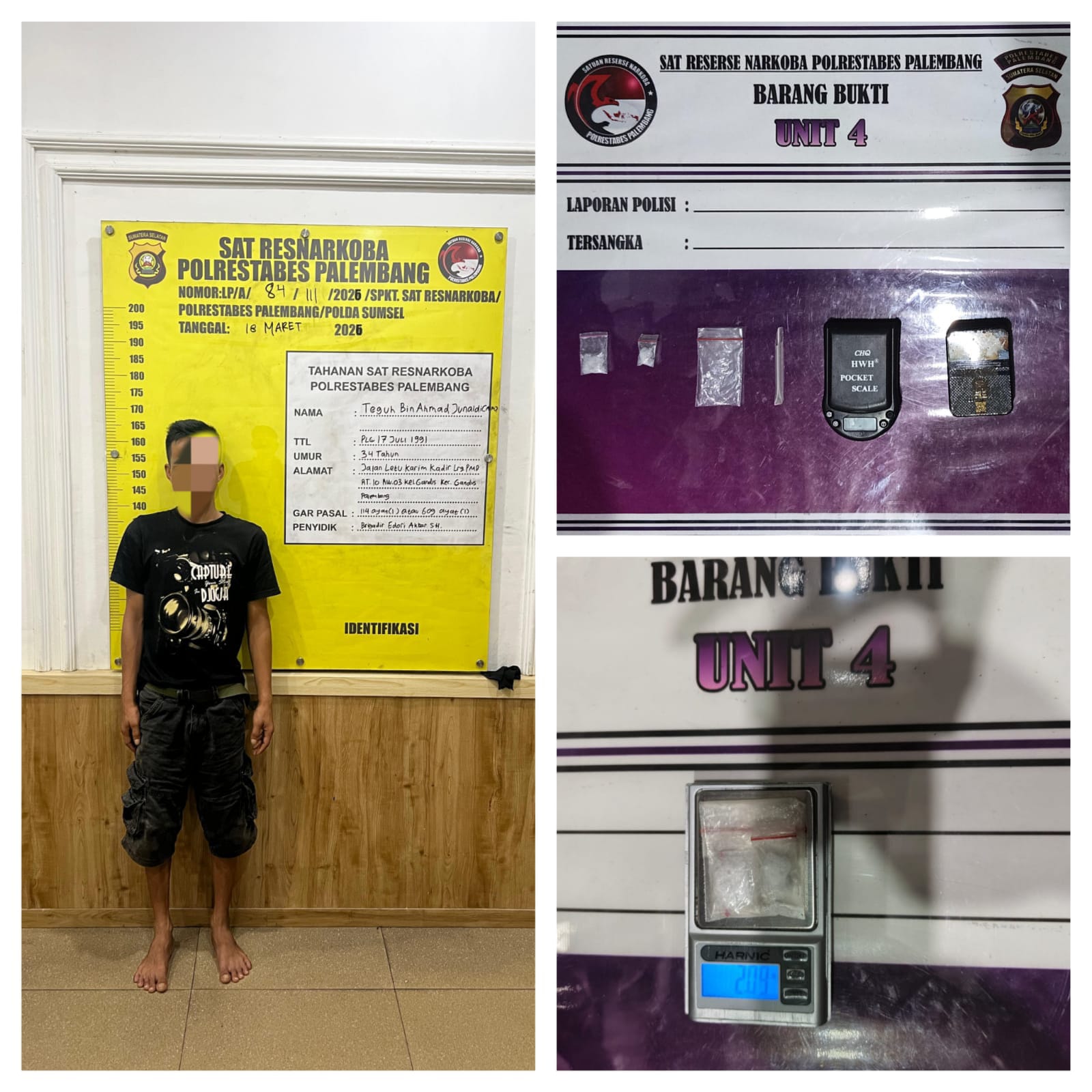 Penangkapan ini berawal dari informasi masyarakat yang melaporkan adanya aktivitas transaksi narkotika di kawasan tersebut. Menindaklanjuti laporan itu, Unit 4 Satresnarkoba Polrestabes Palembang yang dipimpin langsung Kanit 4 bergerak cepat melakukan penyelidikan.