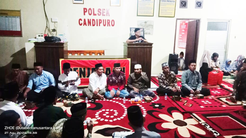 Polsek Candipuro, Polres Lampung Selatan, menggelar acara yasinan dan do’a bersama sekaligus memberikan santunan kepada anak Yatim untuk menyambut Kapolsek baru dan melepas Kapolsek yang lama, Acara digelar di Mapolsek setempat pada Kamis malam (21/08/2025).
