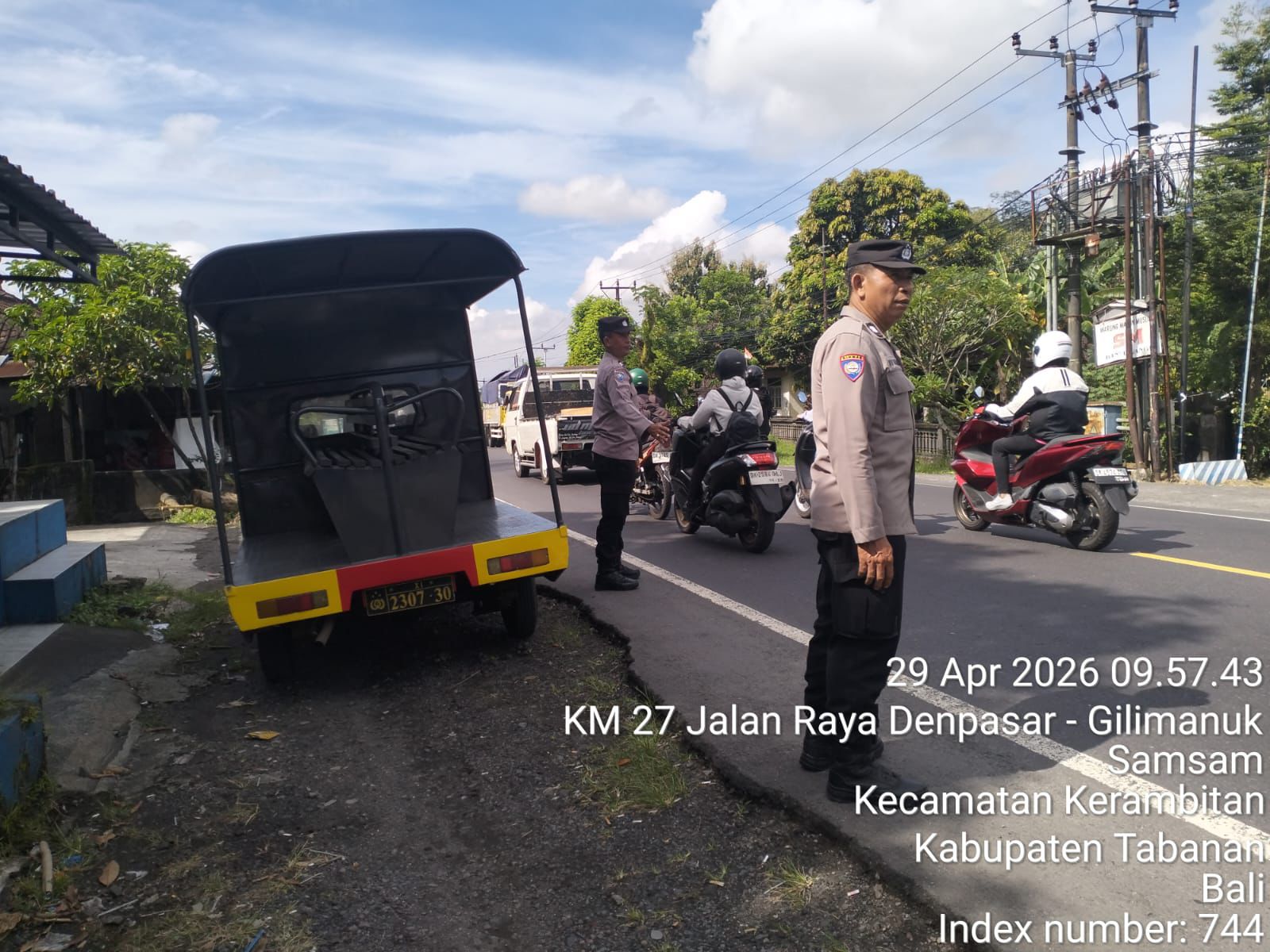 Polsek Kerambitan, Rabu 29 April 2026; Anggota Polsek Kerambitan laksanakan kegiatan Strong Point Khusus Radio Global Pengaturan Lalu Lintas di Jalur Denpasar – Gilimanuk tepatnya di Pos Radio Global yang termasuk Daerah Hukum Polsek Kerambitan.