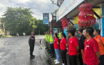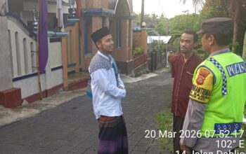 Personel Polsek Selemadeg bersinergi dengan pemuda masjid melaksanakan pengamanan ketat dalam ibadah Sholat Jumat di Masjid Misykatul Huda Bajera, Desa Bajera, Kecamatan Selemadeg, pada Jumat (20/3/2026). Kegiatan yang dimulai pukul 12.00 Wita ini dipimpin langsung oleh Perwira Pengawas (Pawas) IPTU Desak Nyoman Suci, Amd., Kep., S.Sos., dengan melibatkan 4 personel Polri dan 4 anggota pemuda masjid guna menjamin kenyamanan serta kekhusyukan sekitar 60 jemaah yang hadir.