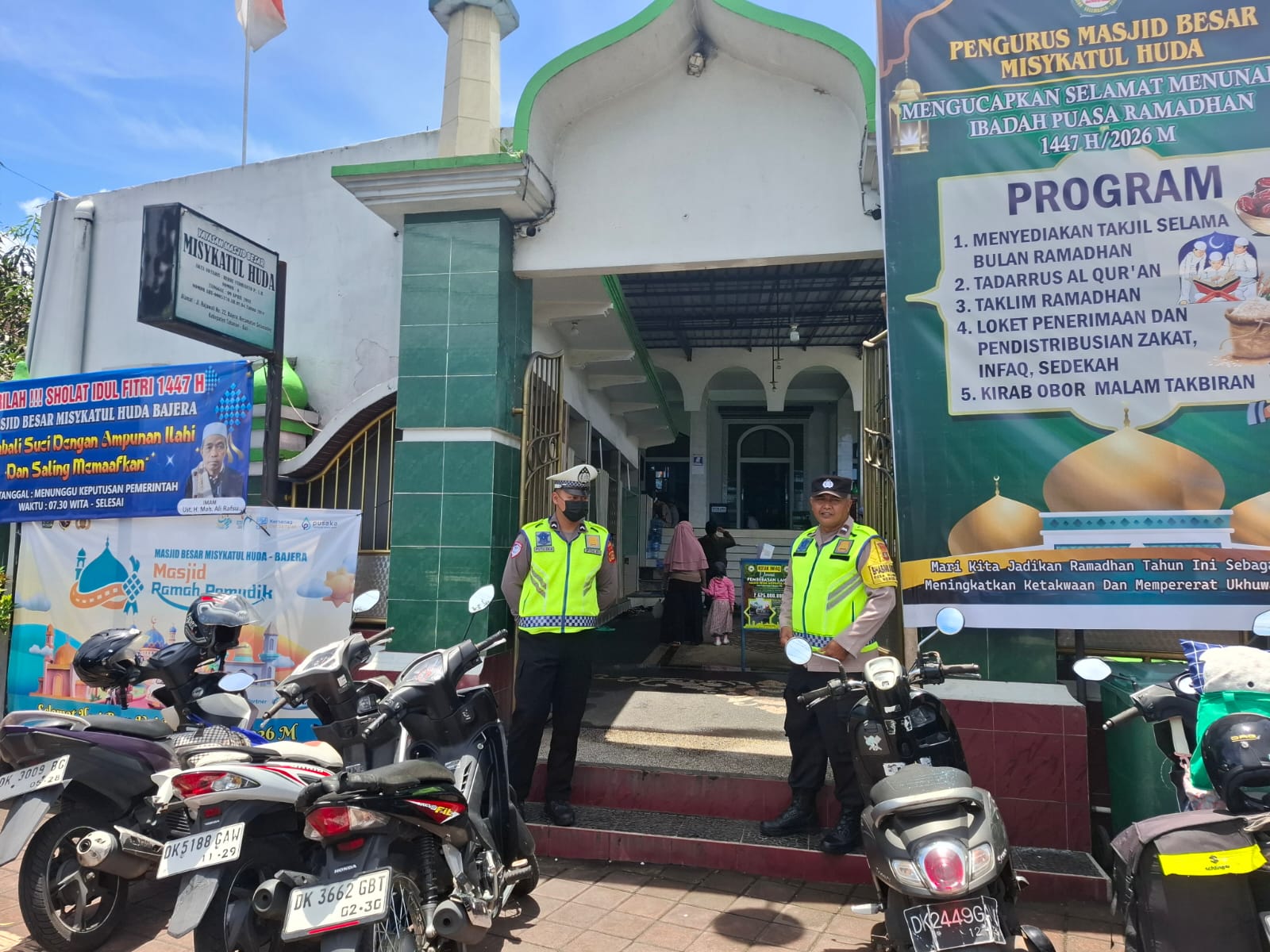 Personel Polsek Selemadeg bersinergi dengan pemuda masjid melaksanakan pengamanan ketat dalam ibadah Sholat Jumat di Masjid Misykatul Huda Bajera, Desa Bajera, Kecamatan Selemadeg, pada Jumat (20/3/2026). Kegiatan yang dimulai pukul 12.00 Wita ini dipimpin langsung oleh Perwira Pengawas (Pawas) IPTU Desak Nyoman Suci, Amd., Kep., S.Sos., dengan melibatkan 4 personel Polri dan 4 anggota pemuda masjid guna menjamin kenyamanan serta kekhusyukan sekitar 60 jemaah yang hadir.