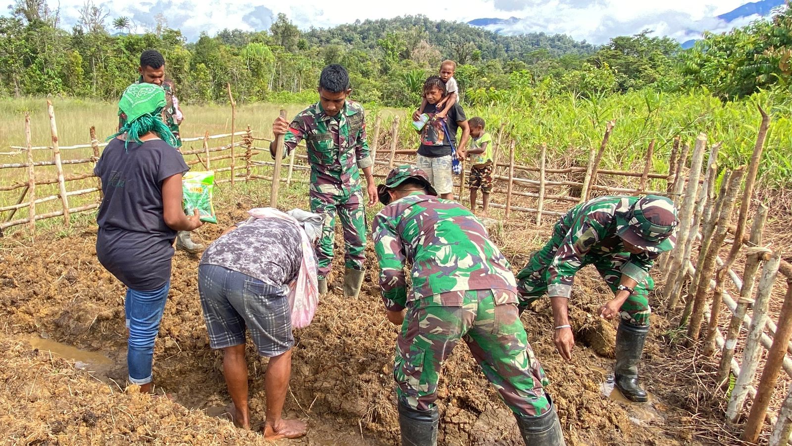 Pos Denom Satgas Pamtas RI–PNG Yonif 751/Vira Jaya Sakti (VJS) melaksanakan kegiatan pembuatan kebun ketahanan pangan bersama masyarakat Kampung Denom. Kegiatan ini tidak hanya berfokus pada pembukaan dan pengolahan lahan, tetapi juga diisi edukasi berkebun kepada warga sebagai upaya meningkatkan kemandirian pangan serta memperkuat sinergi TNI–rakyat di wilayah perbatasan.(Rabu,17/12/2025).