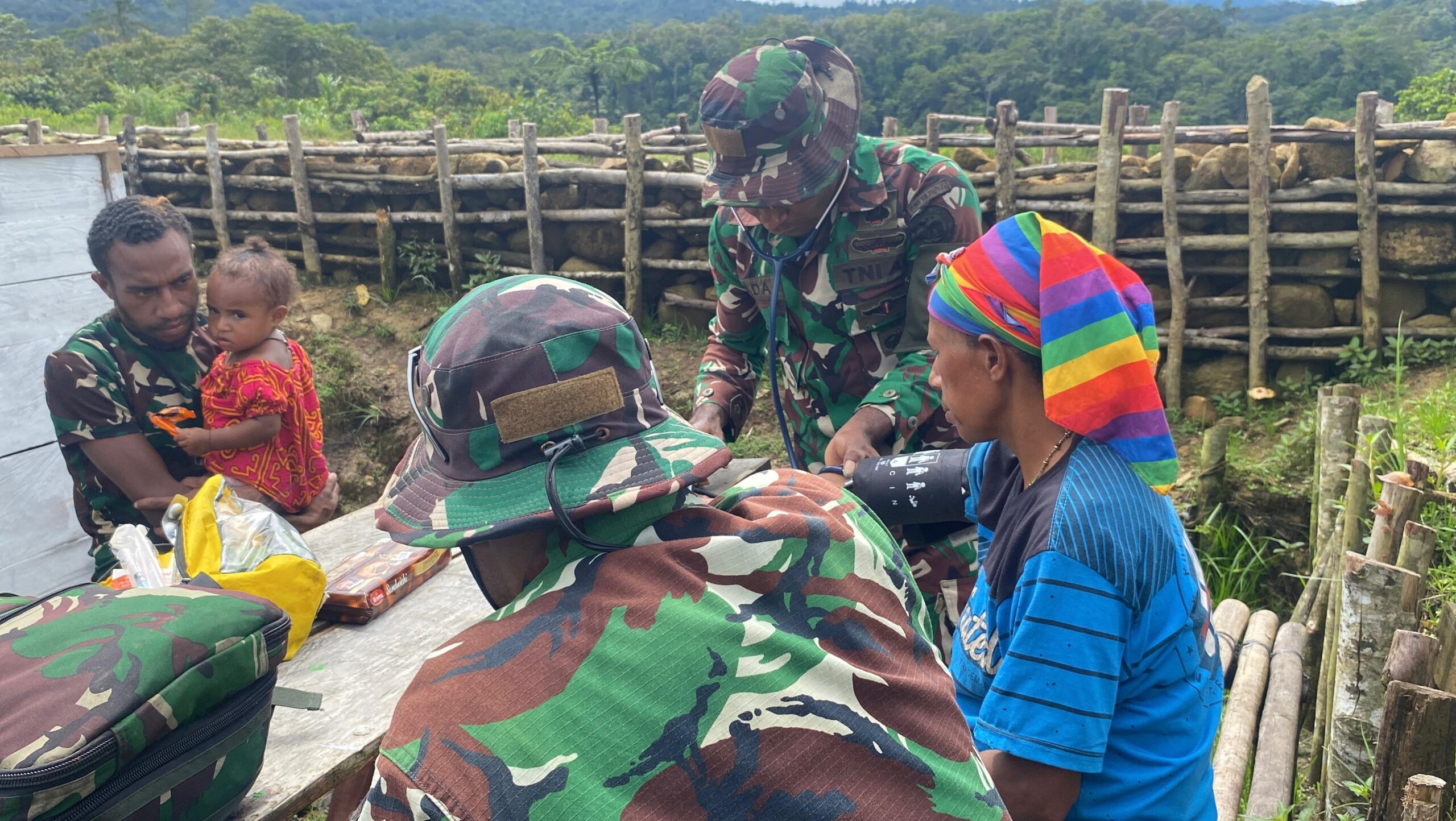 Pos Denom Satgas Yonif 751/Vira Jaya Sakti (VJS) memberikan pelayanan kesehatan kepada masyarakat Denom Atukbin yang datang ke pos sebagai bentuk kepedulian terhadap kesehatan warga di wilayah perbatasan. Kegiatan ini dipimpin oleh Danpos Denom Lettu Inf Agung Riyo Pamungkas. Senin, (27/4/2026).