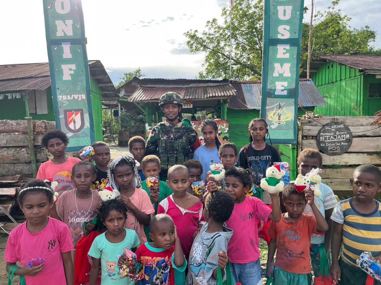 Pos Iwur Satgas Yonif 751/VJS Bagikan Bingkisan Natal untuk Warga: Sembako, Snack, hingga Boneka untuk Anak-Anak