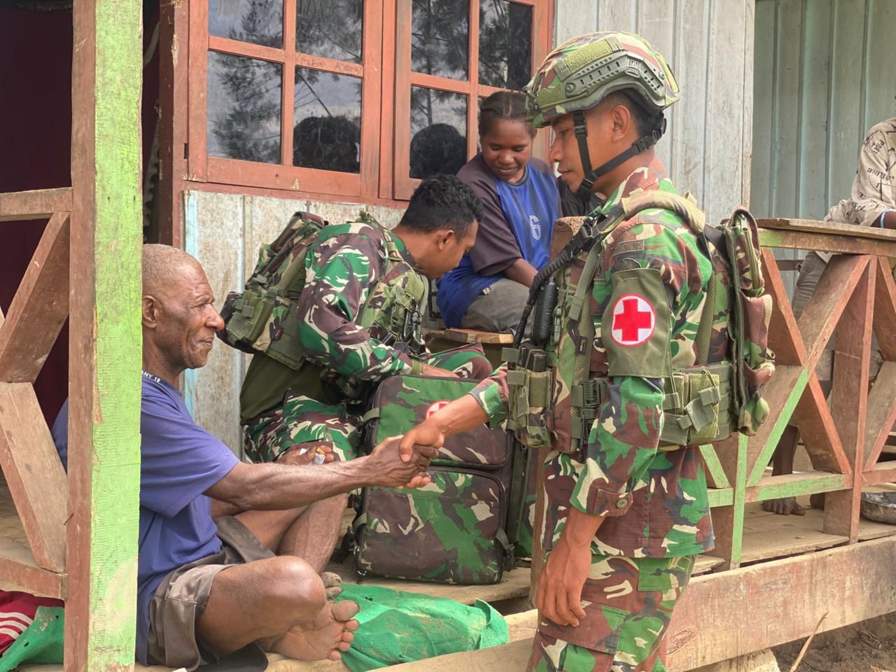 Pos Parim Satgas Pamtas RI–PNG Yonif 751/Vira Jaya Sakti (VJS) melaksanakan kegiatan pengobatan door to door di Kampung Kakopom sebagai upaya mendukung program pembinaan teritorial sekaligus meningkatkan pelayanan kesehatan kepada masyarakat di wilayah binaan.(Minggu,25/1/2026).