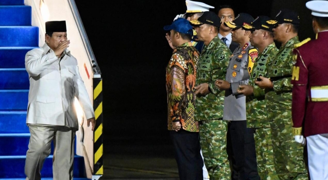 Presiden Republik Indonesia Prabowo Subianto tiba di Tanah Air pada Sabtu petang, 1 November 2025, pukul 18.35 WIB. Sebelumnya, Pesawat Garuda Indonesia-1 lepas landas dari Bandara Internasional Gimhae, Busan, Republik Korea setelah Presiden menuntaskan seluruh rangkaian kegiatan Konferensi Tingkat Tinggi (KTT) Kerja Sama Ekonomi Asia Pasifik (APEC) 2025 di Republik Korea.