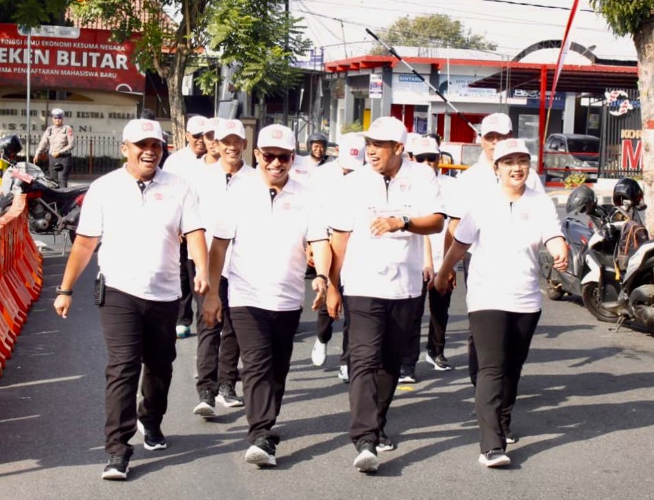 Usai memberangkatkan para peserta lomba baris-berbaris, seluruh jajaran Forkopimda Kota Blitar juga mengikuti lomba itu yang dipimpin langsung oleh Dandim 0808/Blitar.