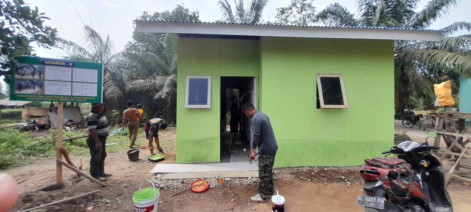 Personel Satgas TNI Manunggal Membangun Desa (TMMD) ke-128 Kodim 0203/Lkt terus menunjukkan progres pengerjaan di lokasi sasaran fisik. Kali ini, pembangunan Rumah Tidak Layak Huni (RTLH) milik bapak Irwansya terus berlanjut dengan tahap pengecatan rumah,Senin (27/04/2026).