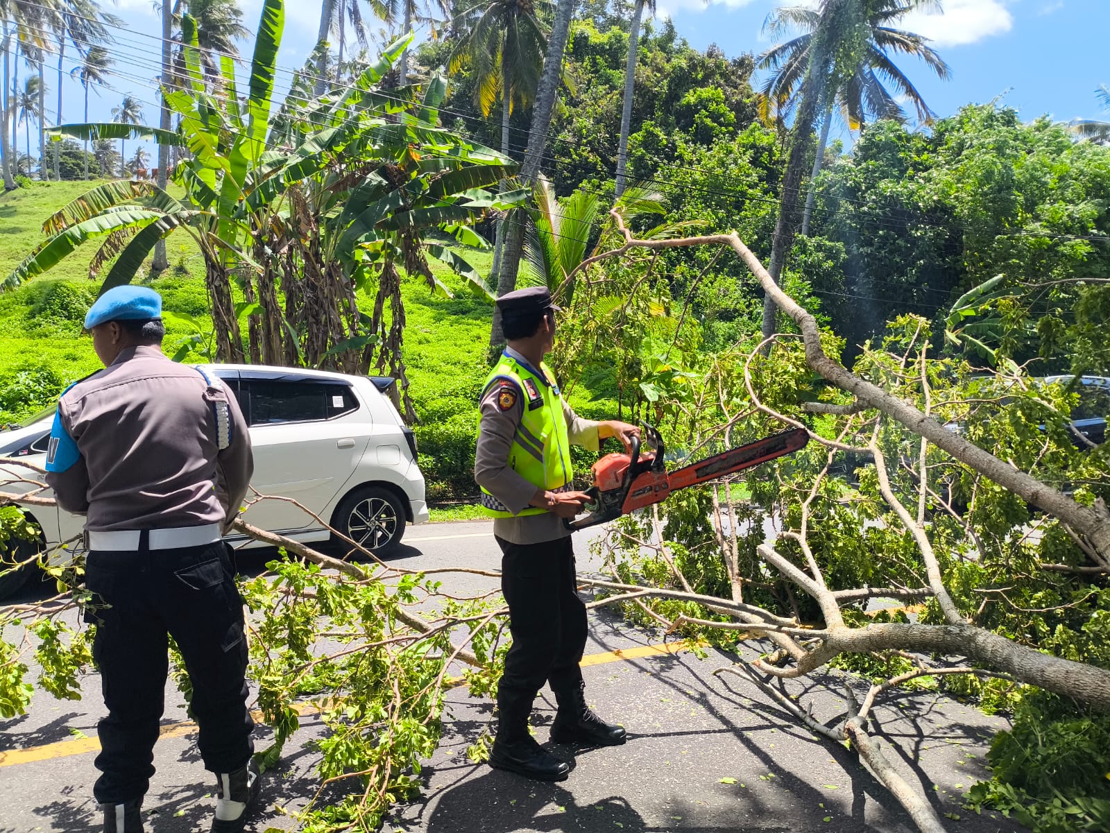 Seijin Kapolres Tabanan AKBP I Putu Bayu Pati, S.I.K., M.H. melalui Kapolsek Selemadeg barat AKP I Kadek Darmawan, S.Sos Mengatakan bahwa pihaknya telah menyiagakan personil keamanan untuk mengawal proses evakuasi pohon tumbang dan membersihkan pohon yg tumbang “Kami telah menyiagakan personil keamanan untuk mengawal proses evakuasi pohon tumbang dan memastikan keselamatan masyarakat,” ujar Kapolsek