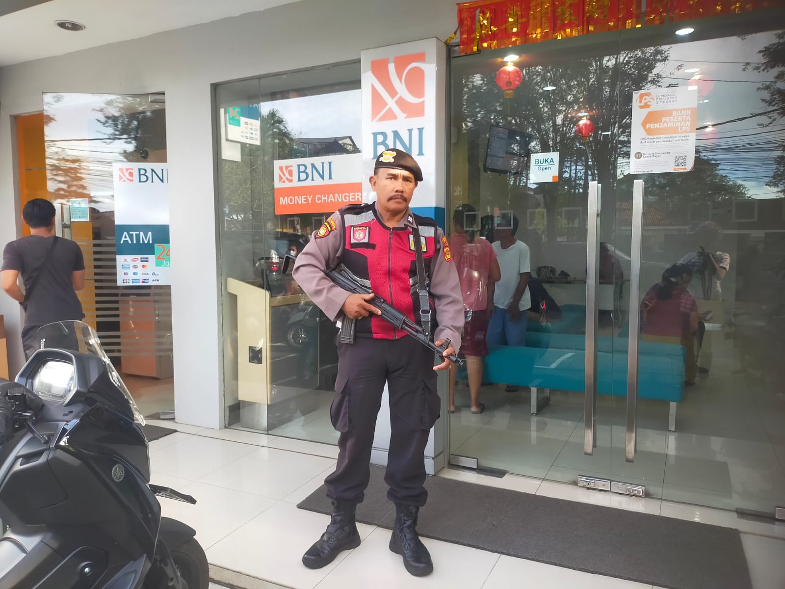 Pengamanan dilaksanakan oleh personel Sat Samapta Polres Tabanan, Aiptu I G.K. Suarsana, dengan melakukan penjagaan dan pemantauan situasi di sekitar area bank. Kehadiran personel berseragam diharapkan mampu mencegah potensi gangguan kamtibmas serta tindak kriminalitas.