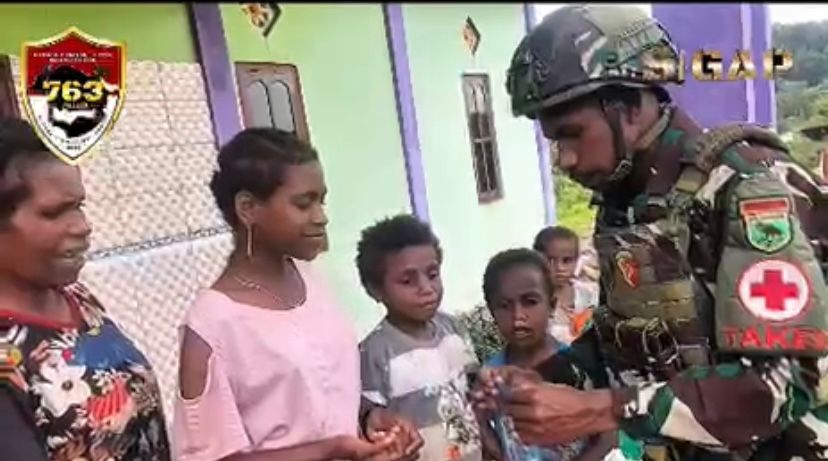 Satgas Pamtas Kewilayahan RI-PNG Yonif 763/SBA Berikan Pelayanan Kesehatan Keliling di Pedalaman Papua
