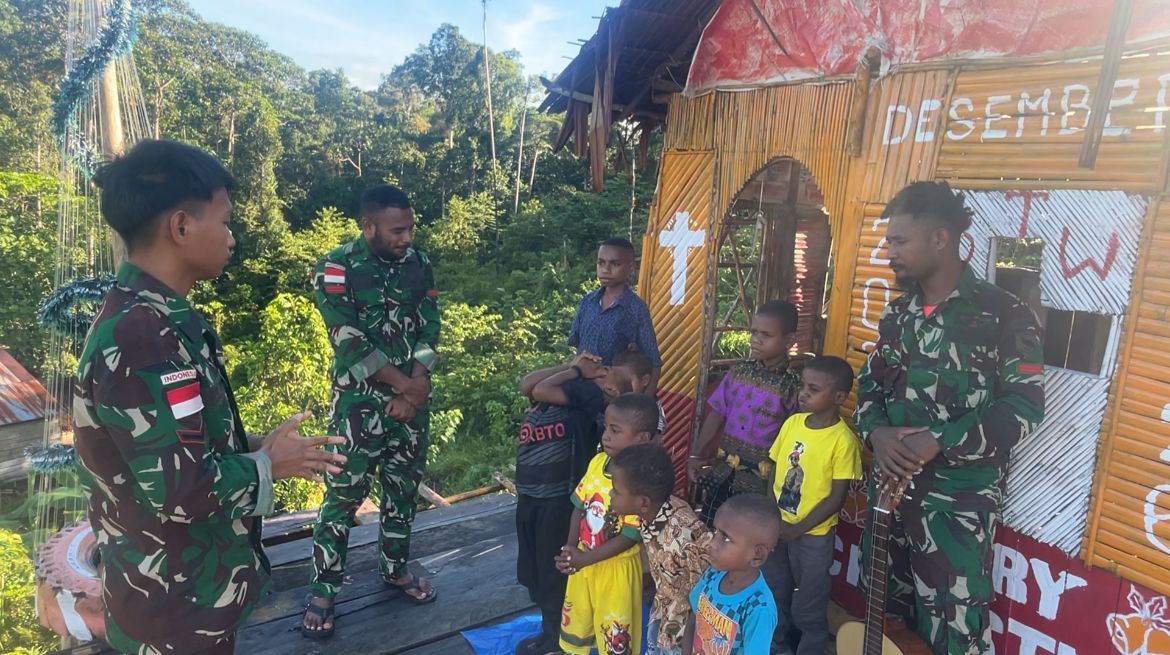 Dalam rangka mempererat hubungan dengan masyarakat, personel Satgas Pamtas RI-PNG Kewilayahan Yonif 763/SBA Pos Joshiro memberikan pemahaman serta pembelajaran mengenai alkitab untuk anak anak kampung arsmin (15/02/2026).