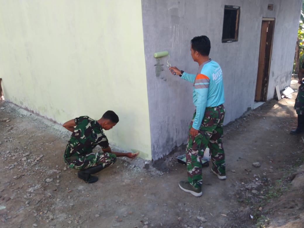 Dalam kegiatan yang berlangsung hari ini, tampak para prajurit TNI bersama warga setempat bahu-membahu melanjutkan pekerjaan perehaban rumah, mulai dari proses pengecatan dinding bagian luar dan dalam, pemasangan plafon, hingga tahap akhir penyelesaian lantai keramik. Kegiatan ini merupakan bagian dari sasaran fisik TMMD yang bertujuan meningkatkan kesejahteraan masyarakat melalui perbaikan infrastruktur perumahan.