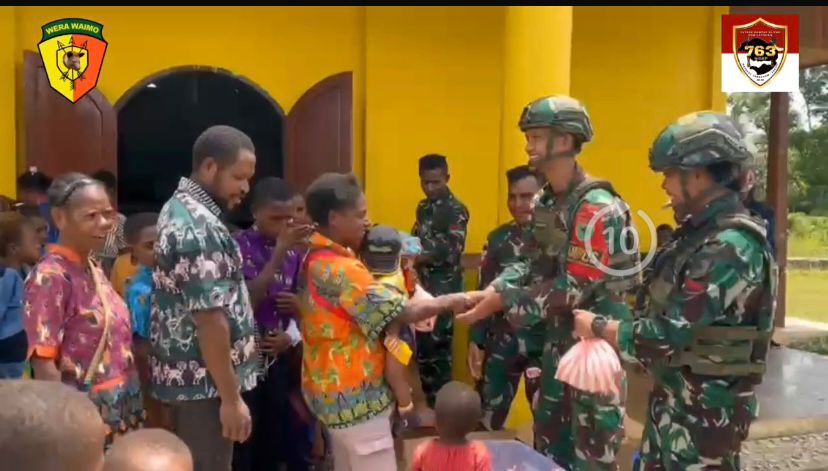 Pos Bori Satgas Yonif 763/SBA melaksanakan kegiatan pembagian sembako kepada masyarakat Kampung Bori. Kegiatan ini dilaksanakan setelah pelaksanaan ibadah hari Minggu di Gereja Santa Monica Bori di Kampung Bori Distrik Aifat Kabupaten Maybrat. (29/10/2025).