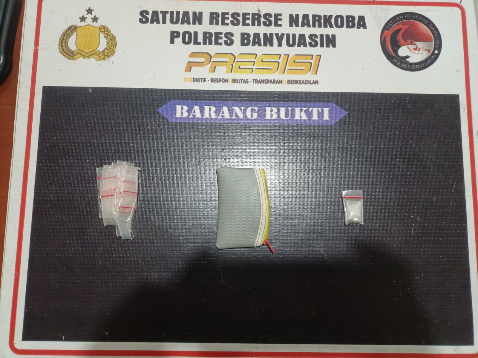 Barang bukti yang berhasil diamankan berupa satu paket sabu dengan berat bruto 1,15 gram. Selain itu, petugas juga menyita satu ball plastik klip kosong, satu dompet warna emas sebagai tempat penyimpanan sabu, serta pakaian yang digunakan tersangka saat penangkapan.