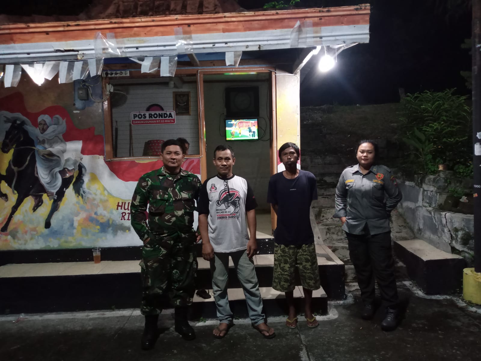 Piket Koramil 03/Serengan Kodim 0735/Surakarta Sertu Rochani melaksanakan Patroli Malam bersama Satlinmas di seputaran wilayah Kecamatan Serengan Kota Surakarta, (03/12/2025).