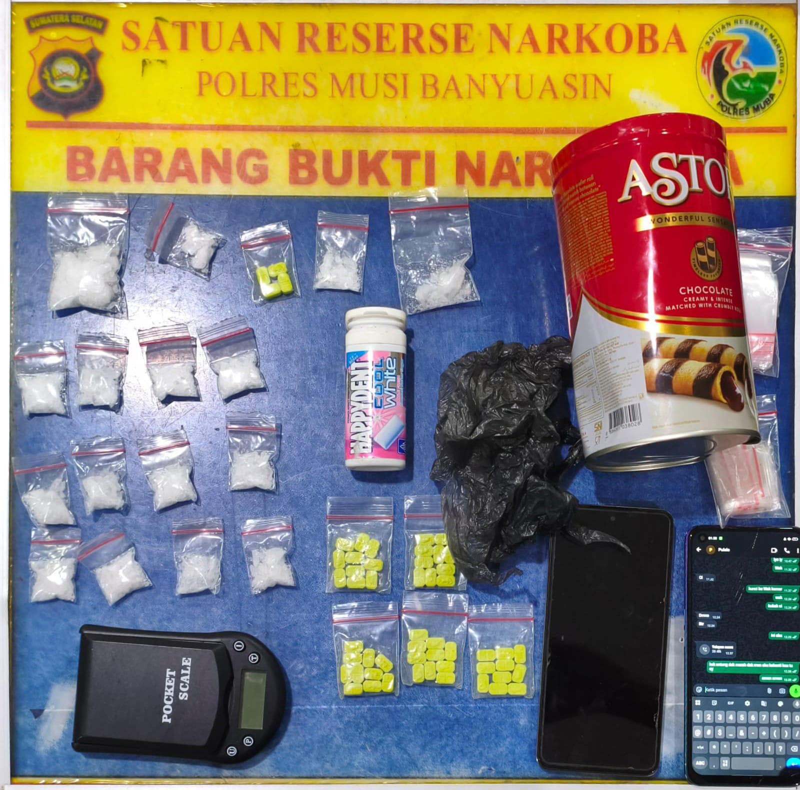 Menindaklanjuti laporan tersebut, jajaran Satresnarkoba Polres Musi Banyuasin melakukan penyelidikan intensif hingga akhirnya melakukan penggerebekan sekitar pukul 13.00 WIB. Saat dilakukan penindakan, kedua tersangka sempat berupaya menghindari petugas dengan berada di dalam kamar mandi, namun berhasil diamankan tanpa perlawanan.