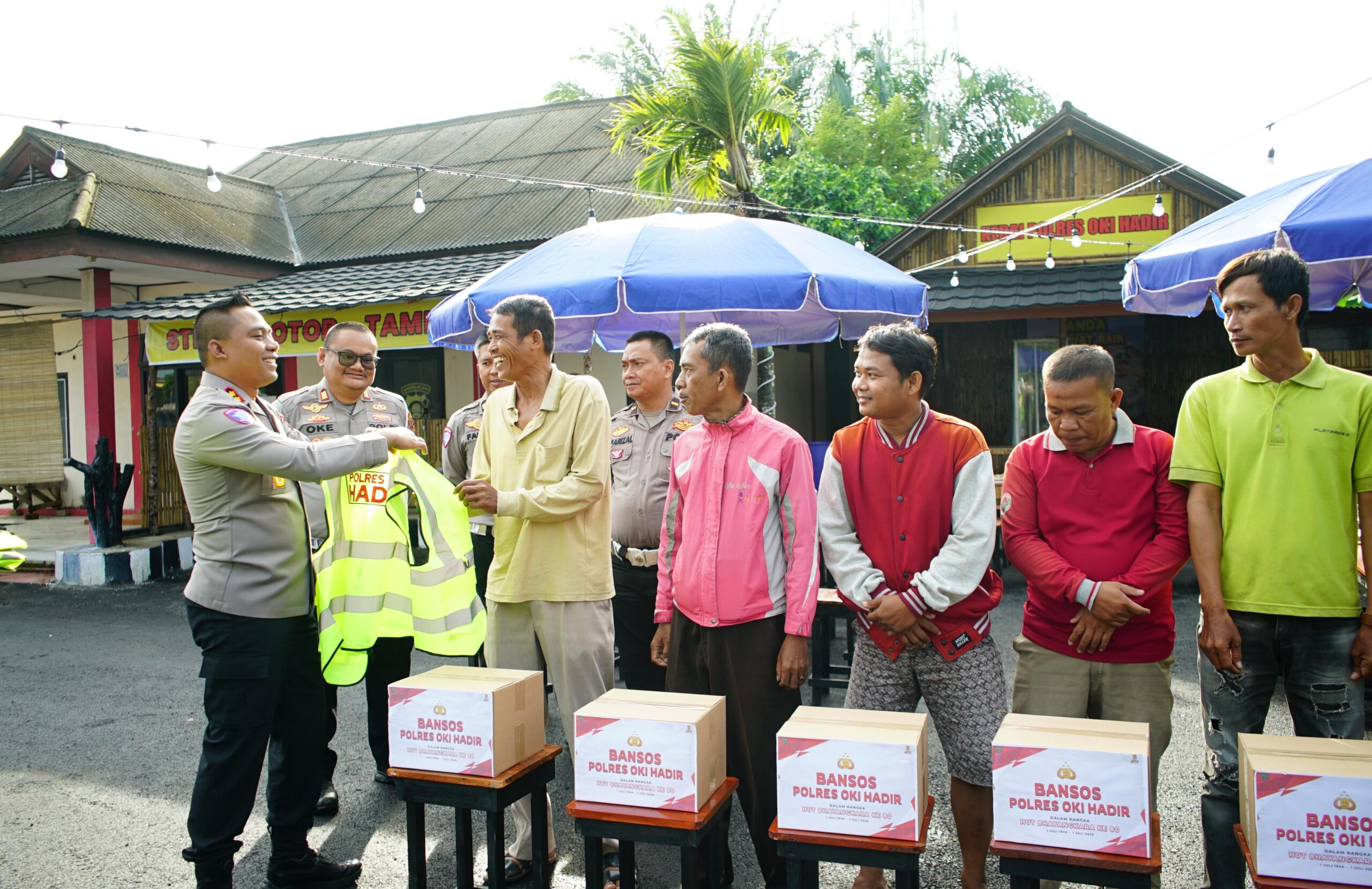 Sebanyak 100 paket sembako disalurkan kepada masyarakat penerima manfaat. Selain itu, Polres OKI juga membagikan rompi kamtibmas sebagai identitas sekaligus simbol kemitraan antara masyarakat dan kepolisian dalam menjaga keamanan lingkungan.