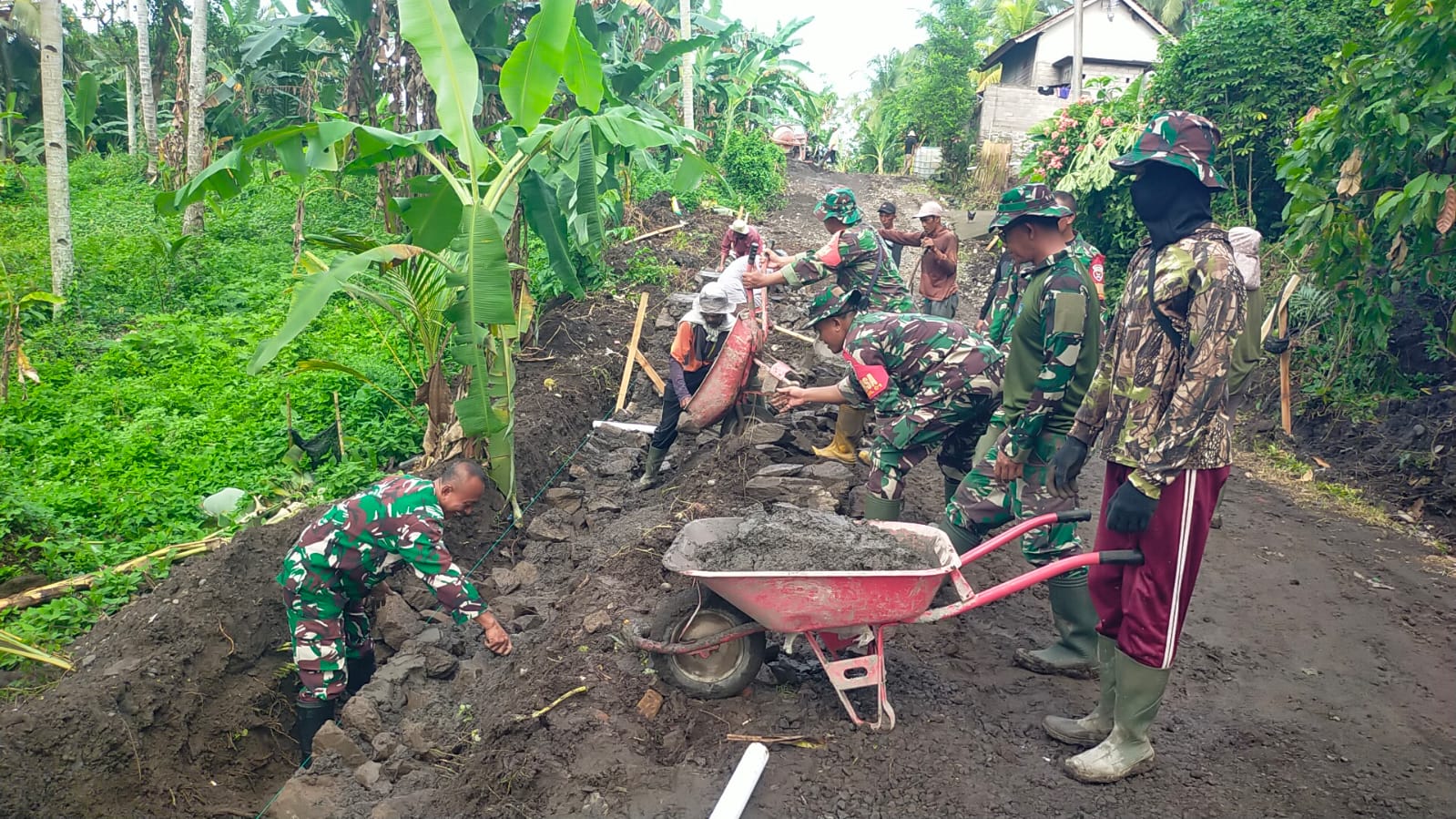 Memasuki hari Senin (09/02/2026), Satuan Tugas (Satgas) TNI Manunggal Membangun Desa (TMMD) ke-127 Kodim 1617/Jembrana terus memacu pengerjaan fisik di Desa Penyaringan, Kecamatan Mendoyo. Fokus utama kegiatan hari ini meliputi renovasi rumah tidak layak huni, pembangunan infrastruktur jalan, hingga penyediaan sarana air bersih.