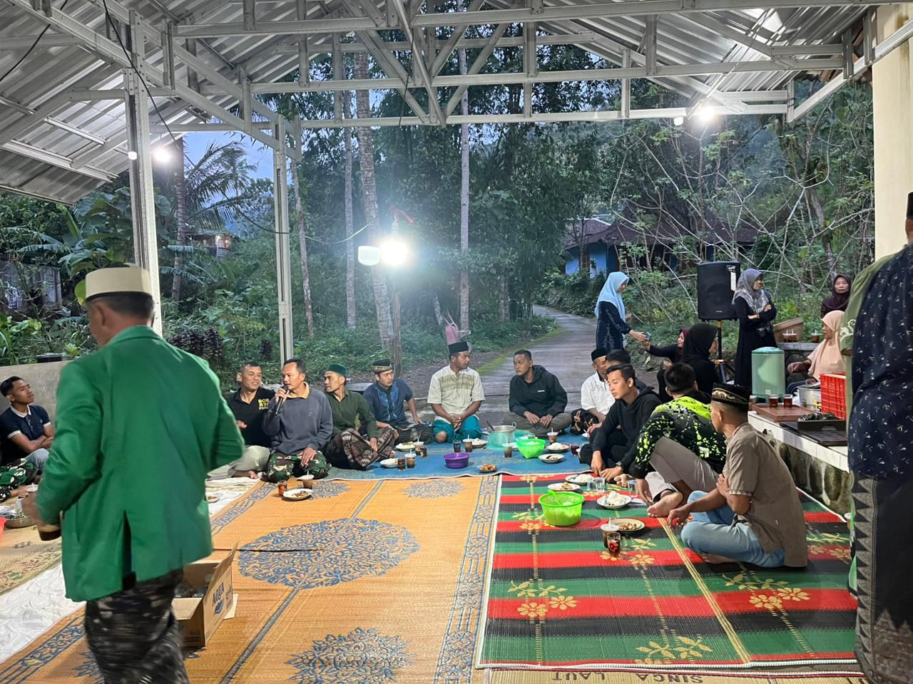 Tanpa sekat, prajurit TNI dan warga duduk bersama menanti datangnya adzan Maghrib. Momen sederhana itu menjadi potret kedekatan antara prajurit Satgas TMMD dan masyarakat yang selama ini terlibat langsung dalam berbagai kegiatan pembangunan desa.