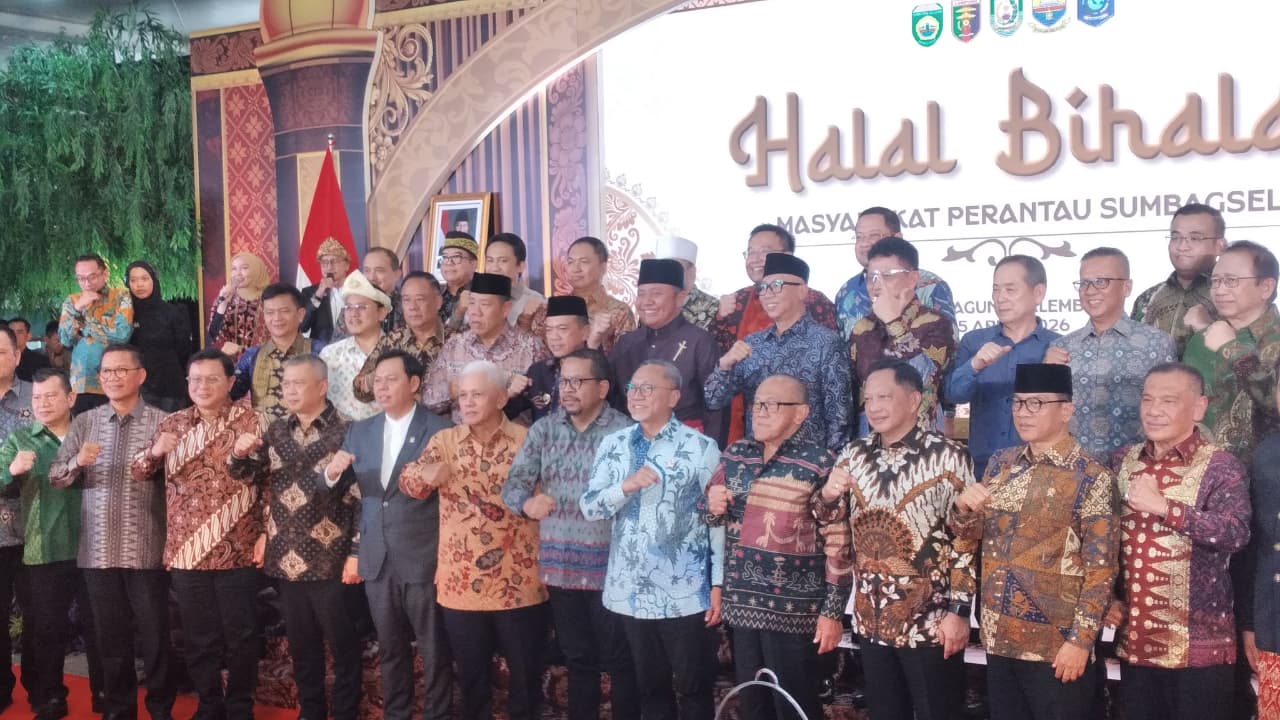 Suasana hangat dan penuh keakraban mewarnai kegiatan Halal Bihalal masyarakat perantau Sumatera Bagian Selatan (Sumbagsel) yang digelar di Griya Agung, Palembang, Sumsel, Sabtu (25/4/2026).