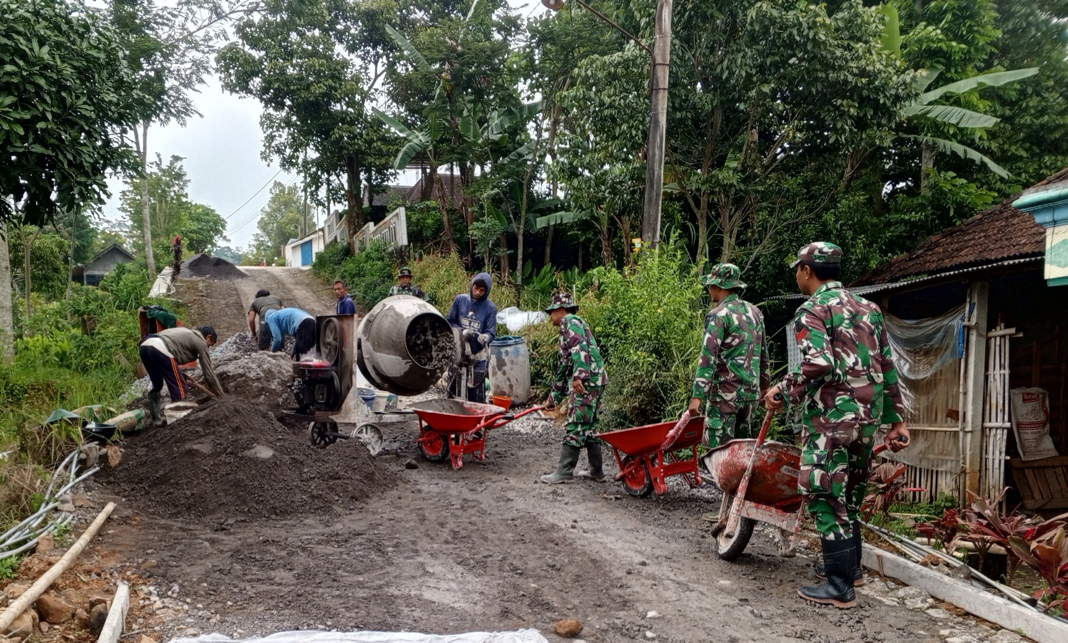 Adukan material terus dibutuhkan dan dibuat menggunakan mesin molen secara bergotong royong antara warga dan anggota Satgas TNI Manunggal Membangun Desa (TMMD) Reguler ke-127 Kodim 0728/Wonogiri.