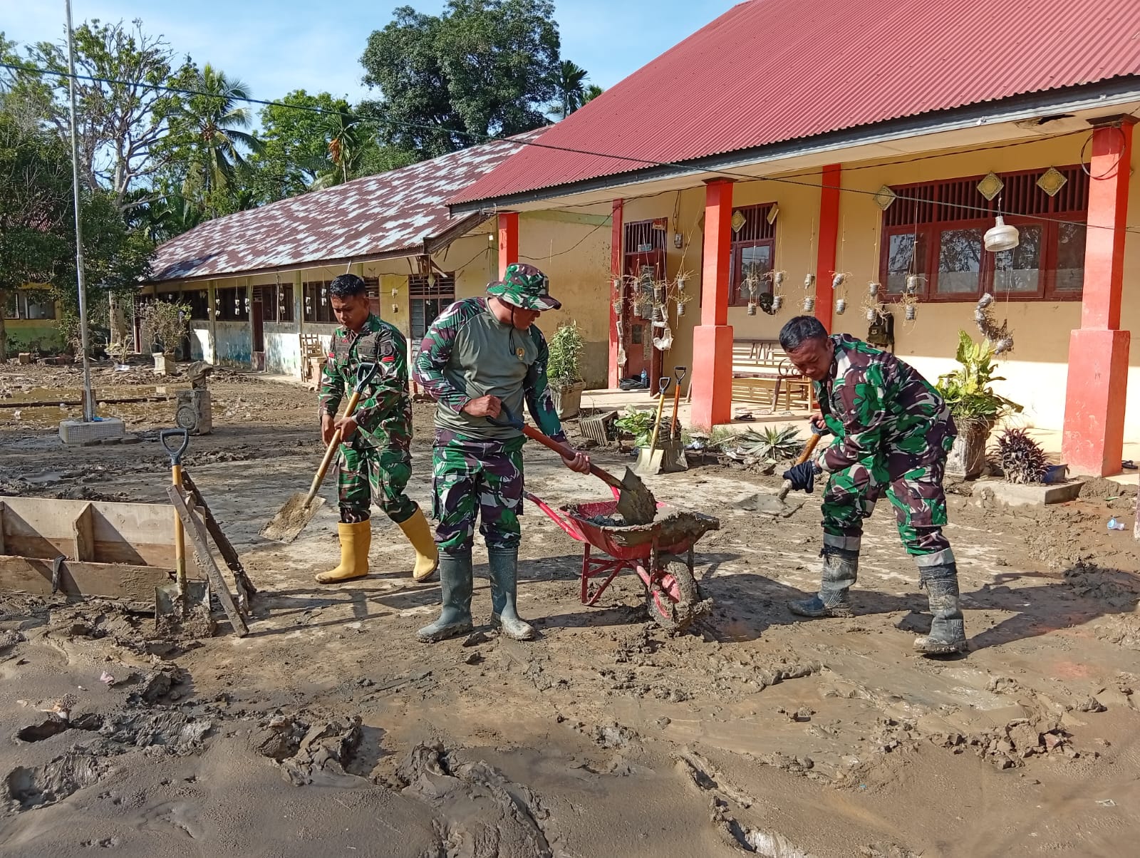 Meski harus berkubang lumpur dan bekerja di medan yang licin, semangat para prajurit dan relawan tidak surut. Aksi kemanusiaan ini menjadi bukti nyata kepedulian TNI dan unsur relawan terhadap dunia pendidikan yang terdampak bencana alam.