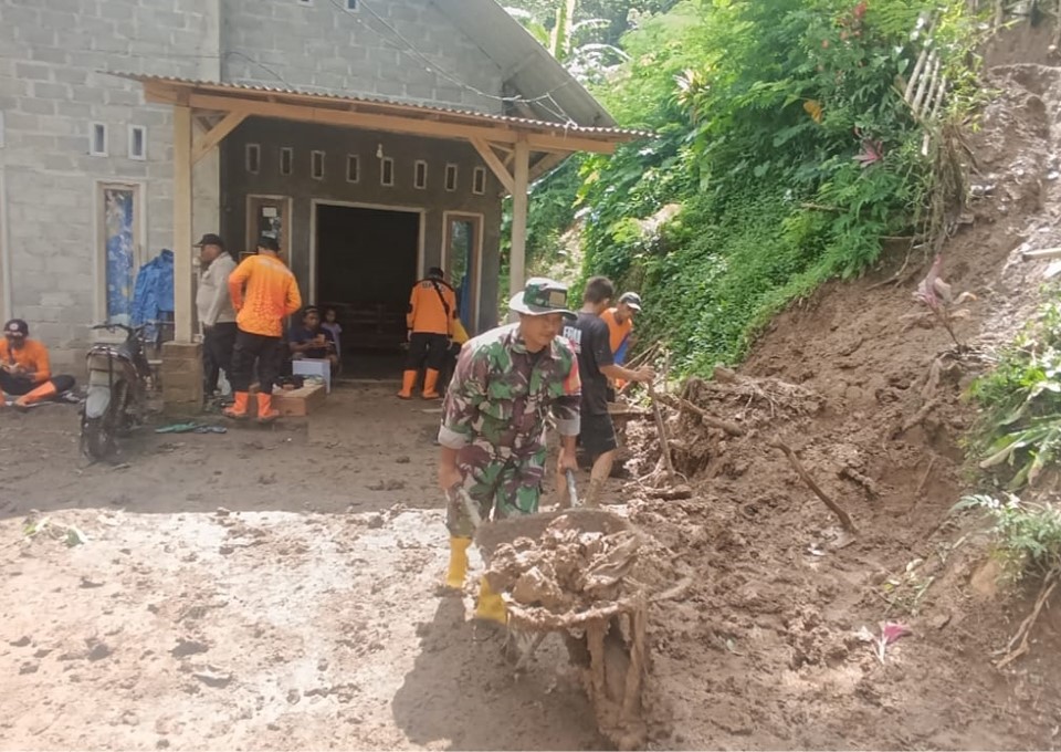 Merespons kejadian ini, Babinsa Desa Semen Koramil 0808/15 Gandusari Serda Awang, segera turun ke lokasi untuk memimpin aksi gotong royong bersama warga setempat. Dengan peralatan seadanya, personel TNI dan masyarakat bahu-membahu membersihkan material tanah guna memastikan akses jalan tetap aman dan beban longsoran tidak semakin menekan struktur bangunan di sekitarnya. Sinergi ini dilakukan sebagai langkah tanggap darurat untuk memulihkan kondisi lingkungan terdampak.