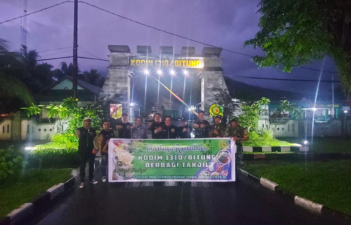 Dalam rangka menyemarakkan bulan suci Ramadhan 1447 Hijriah, Kodim 1310/Bitung bekerja sama dengan organisasi kemasyarakatan (Ormas) Brigade Nusa Utara (Branut) Kota Bitung, menggelar kegiatan pembagian takjil kepada masyarakat dan para pengguna jalan, bertempat di Depan Makodim 1310/Bitung Kel. Madidir Unet Kec. Madidir, Kota Bitung, Sabtu (14/03/2026).