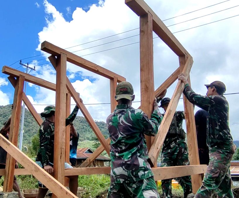 TNI melalui Program TNI Manunggal Air membangun dan menyerahkan penampungan air bersih bagi warga Kampung Kutdol, sebagai solusi keterbatasan akses air terutama pada musim kemarau. Program ini menyasar kampung-kampung di sekitar Pos Okpol yang kerap terkendala pasokan air, agar kebutuhan harian—mulai dari konsumsi, kebersihan, hingga sanitasi—lebih terjamin.(Senin,24/11/2025).