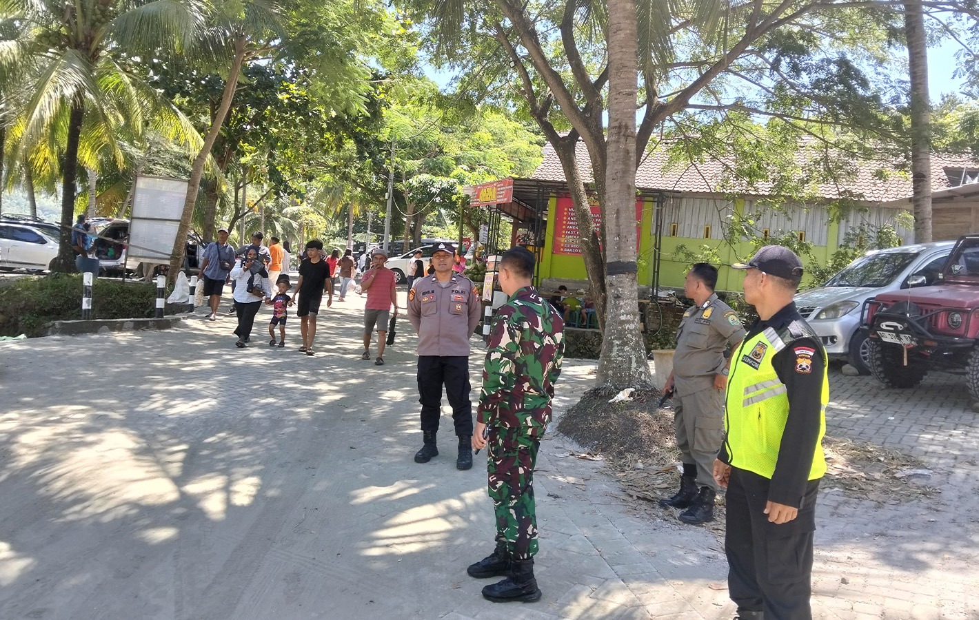 Kehadiran aparat gabungan di lokasi wisata menjadi langkah preventif untuk memastikan aktivitas masyarakat berlangsung aman, tertib, dan nyaman. Personel gabungan melakukan pemantauan di sejumlah titik strategis, mulai dari akses masuk kawasan wisata, lokasi parkir kendaraan, area keramaian pengunjung, hingga zona tepi pantai yang rawan terjadi kepadatan aktivitas.
