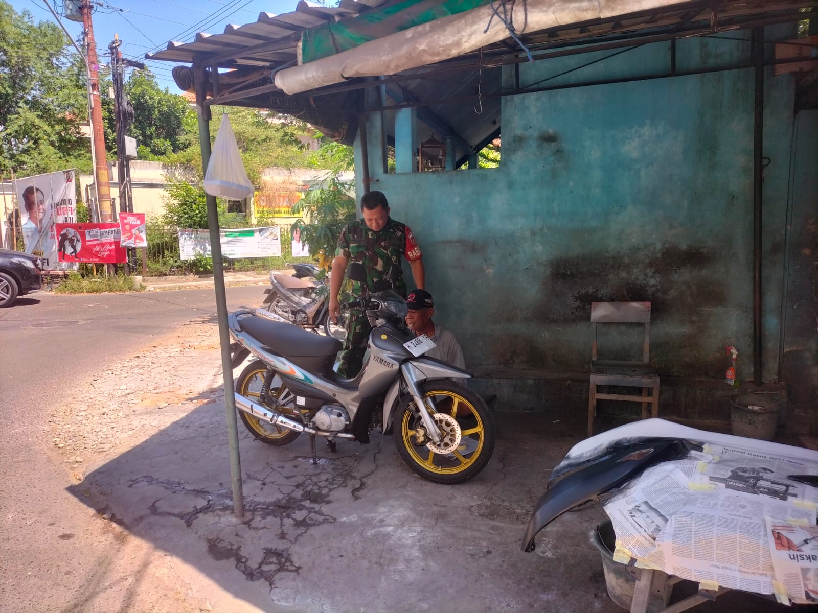Jalin hubungan kemasyarakatan guna mempererat tali silaturahmi, Babinsa Kemlayan Koramil 03/Serengan Kodim 0735 Surakarta Serka Priyanto Sambang wilayah dengan Bapak Samsuri yang keseharian sebagai tukang tambal Ban yang bertempat di Jln. Gambir Anom RT 03 RW 06 Kemlayan Serengan Kota Surakarta, Selasa (25/11/2025) Pukul 10.00 wib.