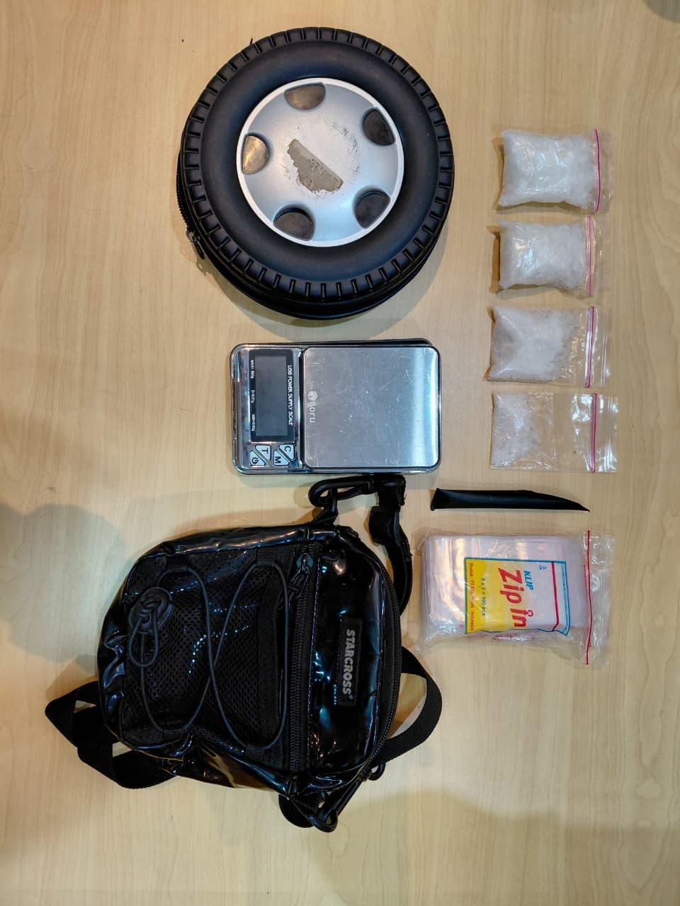 Dari penggeledahan awal, petugas menemukan dua paket sabu seberat bruto 43,00 gram yang disimpan dalam tas sandang kecil warna hitam dan dibungkus lakban cokelat. Selain itu, satu unit telepon genggam merek Infinix Smart 8 turut diamankan.