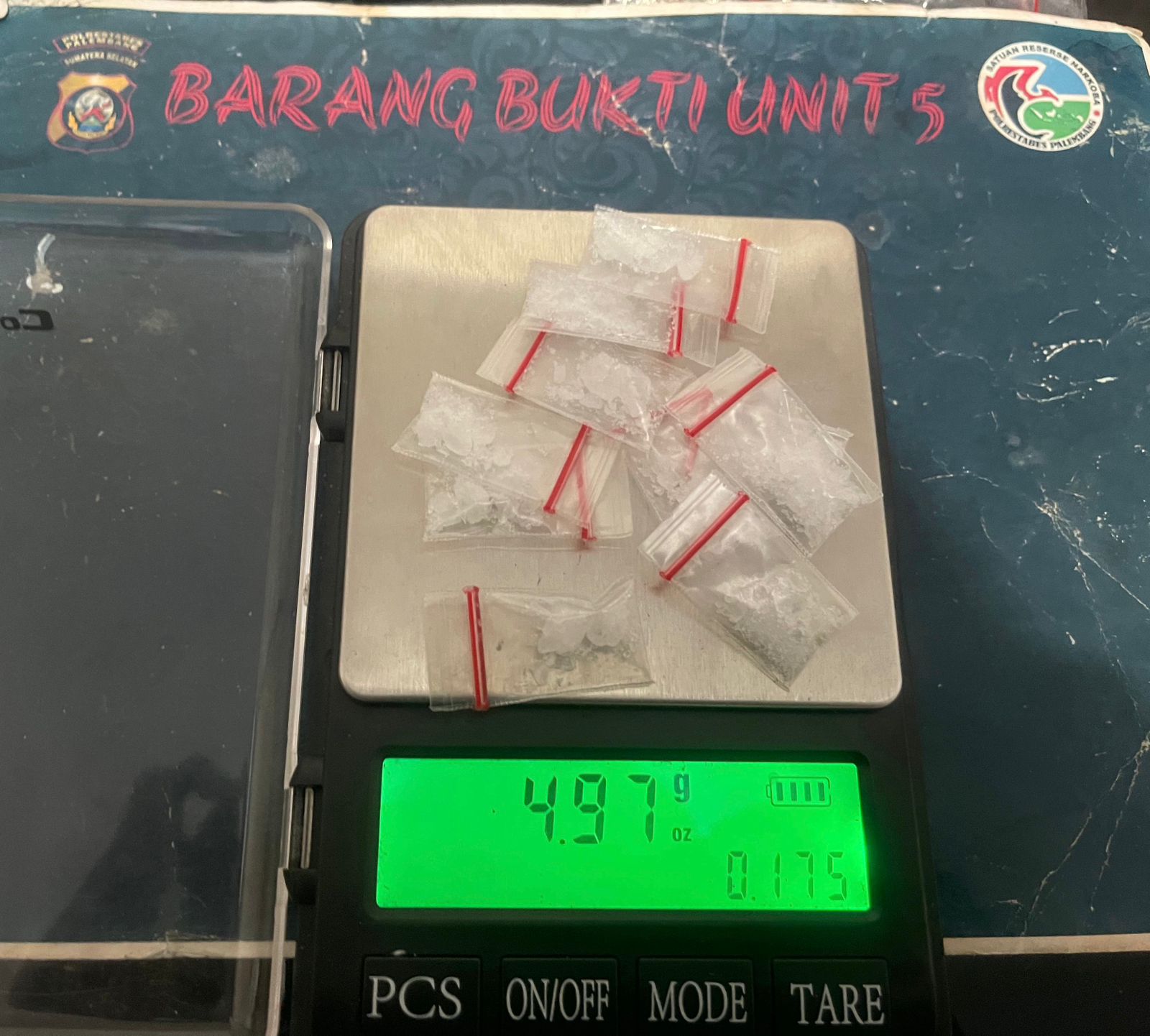 Dari hasil penggeledahan, polisi mengamankan barang bukti berupa 10 paket sabu dengan berat bruto 4,97 gram, satu timbangan digital, satu pipet plastik berbentuk sekop, satu unit handphone Oppo A18, serta uang tunai sebesar Rp50.000 yang diduga hasil transaksi. Hasil tes urine terhadap tersangka juga menunjukkan positif narkotika.