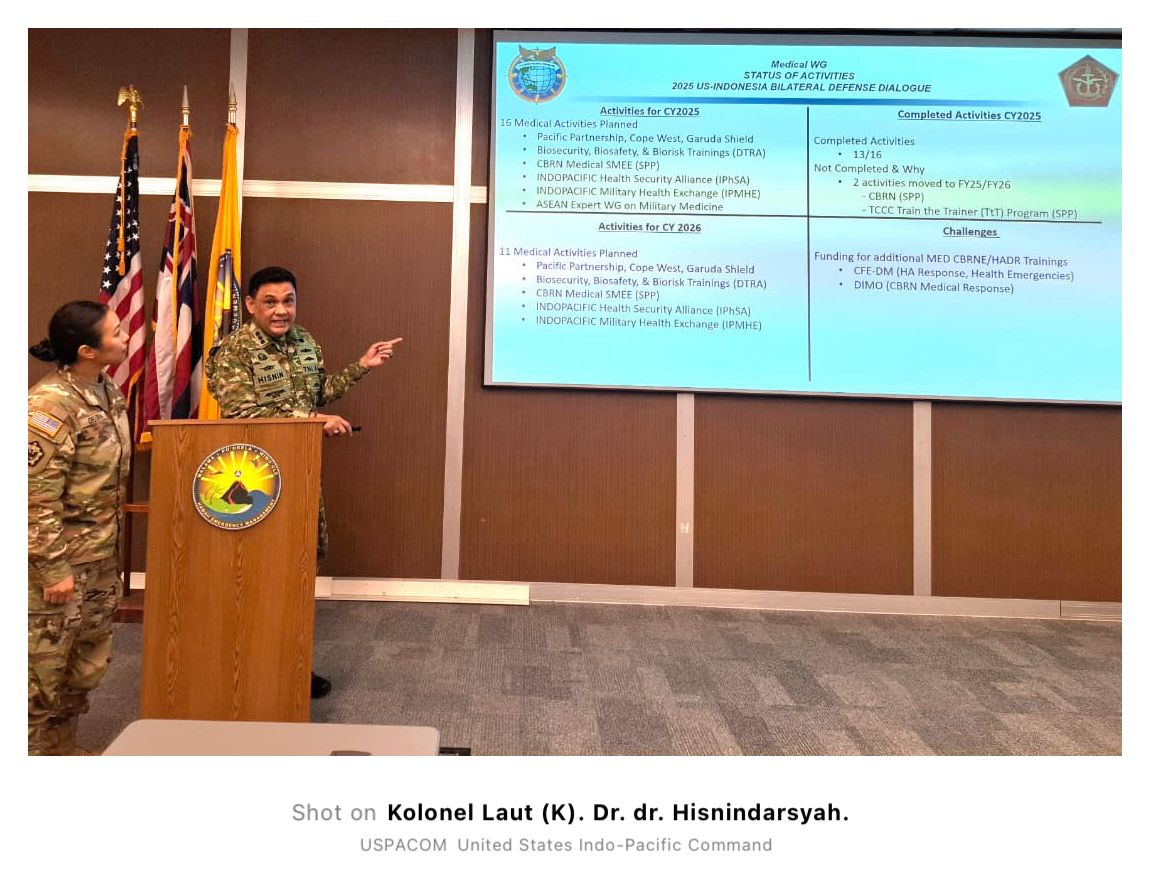 Kegiatan yang dilaksanakan selama 2 (dua) hari tanggal 16-17 desember 2025 di Hawaii Emergency Departemen dan Kantor Pusat US Indopacom di Diamond Care Hawaii Honololu diikuti oleh 15 delegasi dari TNI dan 25 delegasi dari US.