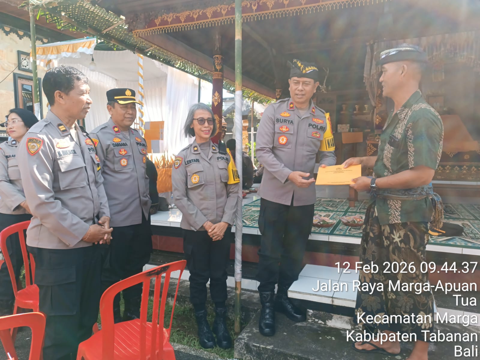 Seizin Kapolres Tabanan AKBP I Putu Bayu Pati, S.I.K., M.H. – Melalui Kapolsek Baturiti Kompol Nyoman Darsana, S.H. disampaikan bahwa kegiatan melayat ini merupakan wujud kepedulian, kebersamaan, dan solidaritas keluarga besar Polri dalam memberikan dukungan moril kepada anggota yang sedang berduka, sehingga tetap terjalin hubungan kekeluargaan yang harmonis di lingkungan institusi.